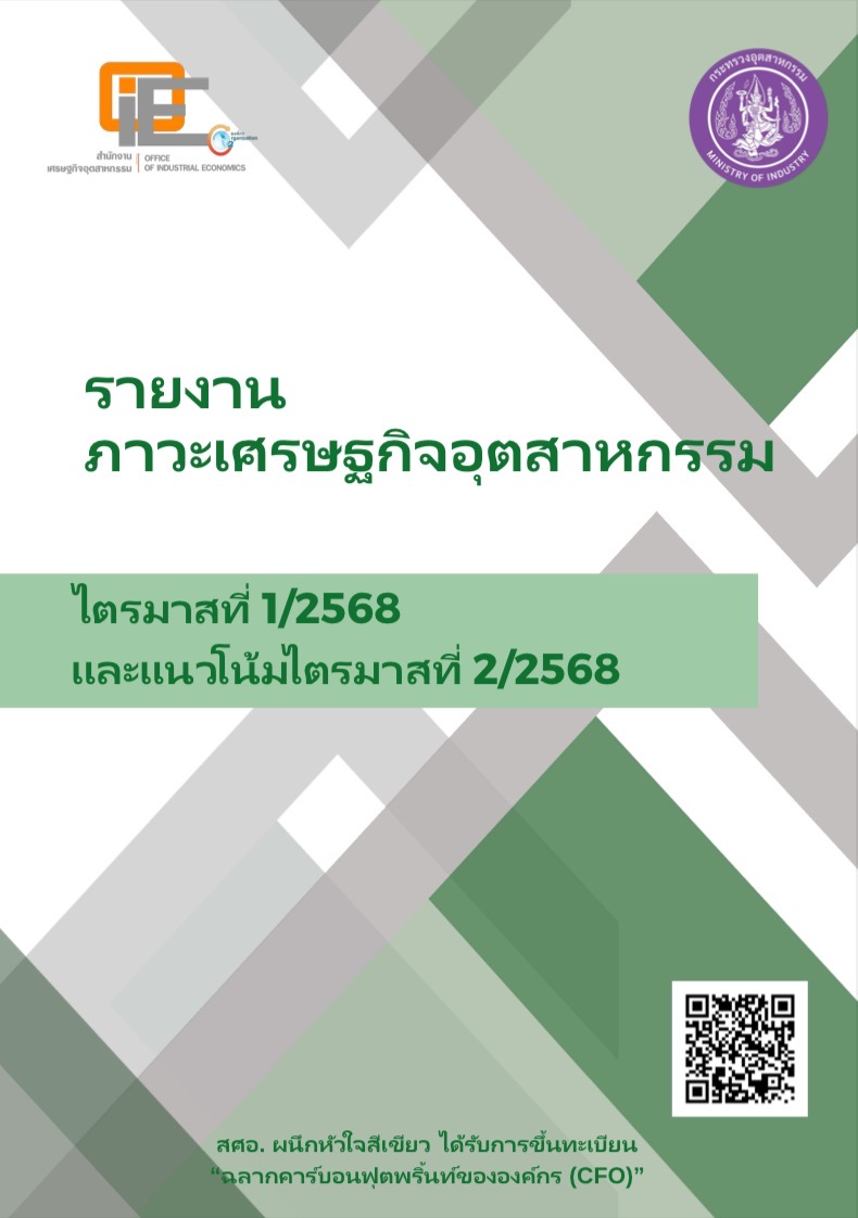 สำนักงานเศรษฐกิจอุตสาหกรรม (สศอ.) กระทรวงอุตสาหกรรม ได้จัดทำรายงานภาวะเศรษฐกิจอุตสาหกรรมรายไตรมาสที่ 1/2568 และแนวโน้มไตรมาสที่ 2/2568 ซึ่งเป็นการศึกษาและวิเคราะห์ข้อมูลอุตสาหกรรมในภาพรวมและอุตสาหกรรมรายสาขา