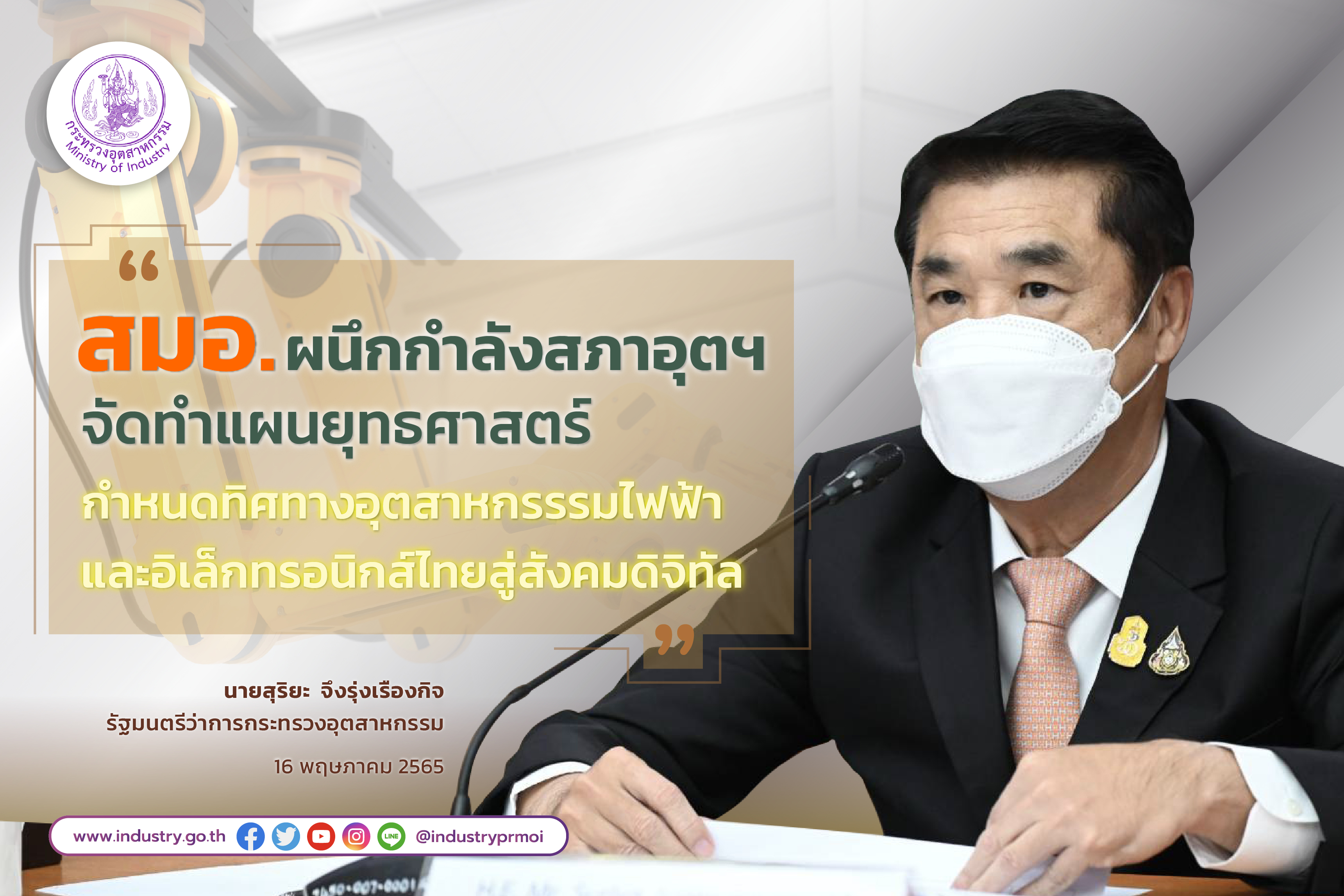 นายสุริยะ จึงรุ่งเรืองกิจ รัฐมนตรีว่าการกระทรวงอุตสาหกรรม เปิดเผยว่า สำนักงานมาตรฐานผลิตภัณฑ์อุตสาหกรรม (สมอ.) และสภาอุตสาหกรรมแห่งประเทศไทย เตรียมผนึกกำลังจัดทำแผนยุทธศาสตร์อุตสาหกรรมไฟฟ้าและอิเล็กทรอนิกส์ของไทย เพื่อกำหนดทิศทางในการพัฒนาอุตสาหกรรมไฟฟ้าและอิเล็กทรอนิกส์ ให้มีศักยภาพ และมีความพร้อมก้าวเข้าสู่สังคมดิจิทัลได้ทัดเทียมกับประชาคมโลก โดยความร่วมมือดังกล่าวเป็นผลมาจากมติการประชุมคณะกรรมการแห่งชาติว่าด้วยมาตรฐานเทคนิคทางไฟฟ้าระหว่างประเทศ (กมฟท.) เมื่อวันที่ 2 พฤษภาคม 2565 ที่ผ่านมา ได้เห็นชอบให้จัดตั้งคณะทำงานจัดทำแผนยุทธศาสตร์อุตสาหกรรมไฟฟ้าและอิเล็กทรอนิกส์ของไทย โดยมีสภาอุตสาหกรรมแห่งประเทศไทยเป็นประธานคณะทำงาน และ สมอ. เป็นฝ่ายเลขานุการ