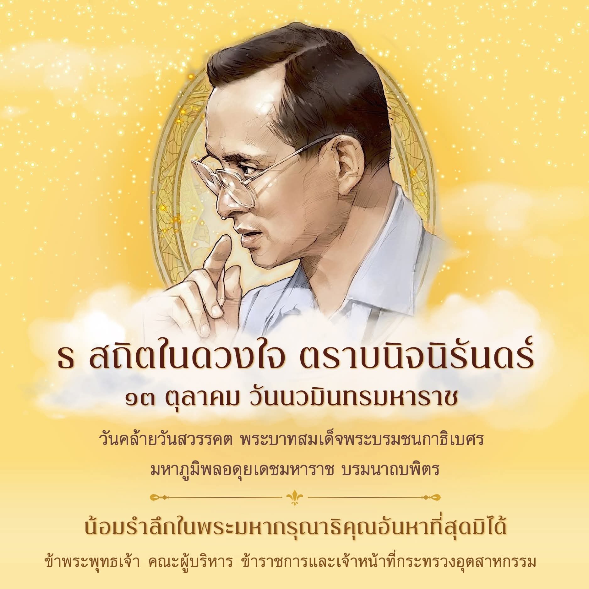 น้อมรำลึกในพระมหากรุณาธิคุณอันหาที่สุดมิได้ ข้าพระพุทธเจ้า คณะผู้บริหาร ข้าราชการและเจ้าหน้าที่กระทรวงอุตสาหกรรม
