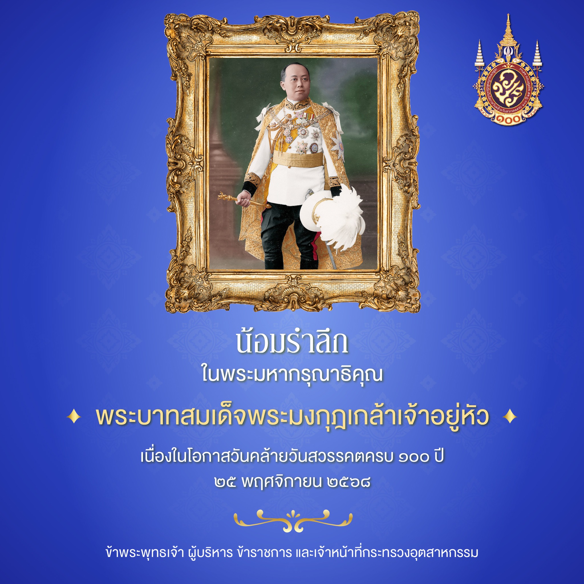 เนื่องในโอกาสวันคล้ายวันสวรรคตครบ 100 ปี 25 พฤศจิกายน 2568