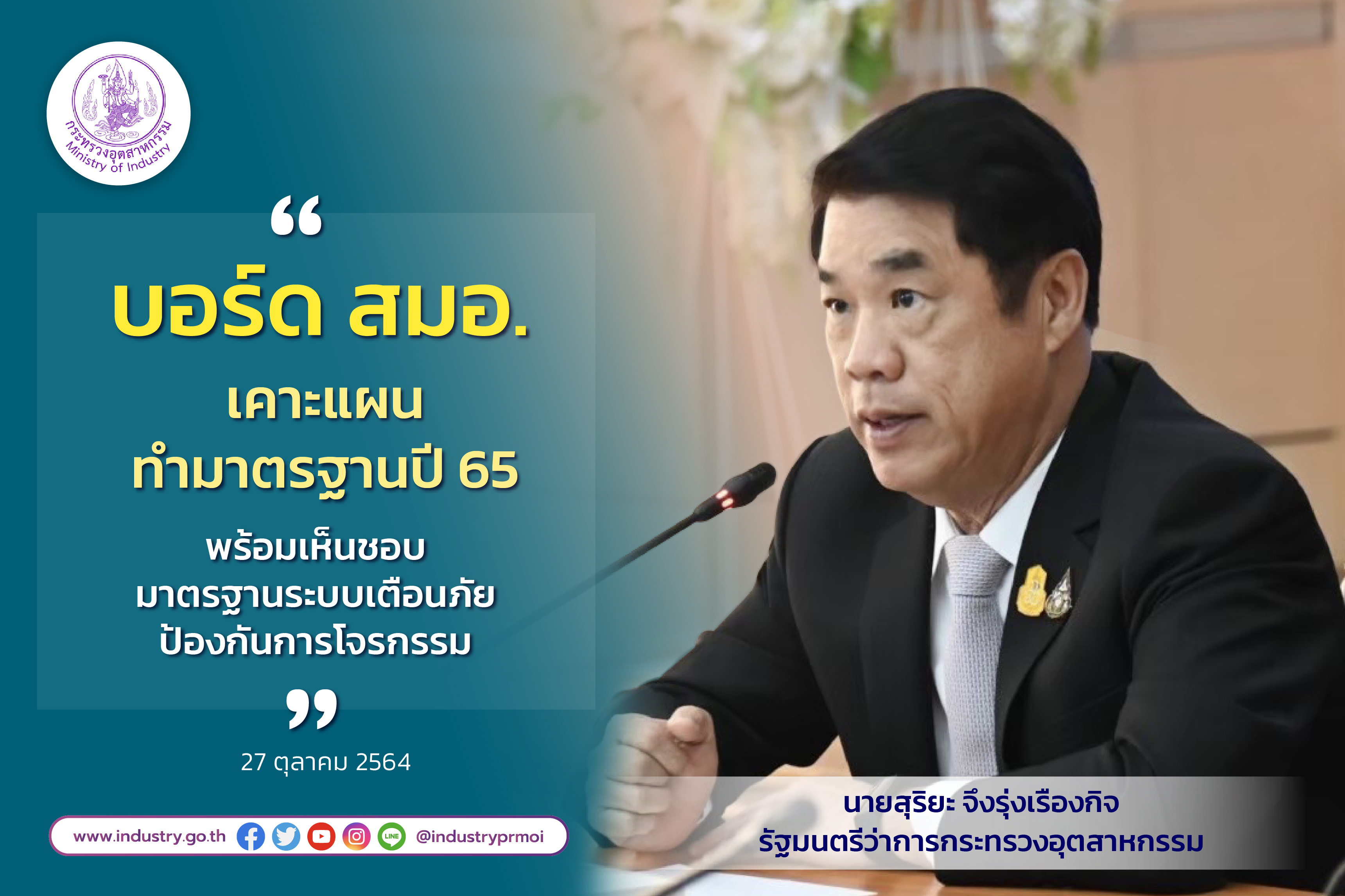 บอร์ด สมอ. เคาะแผนจัดทำมาตรฐาน ปี’65 ทั้งเอสเคิร์ฟ (S-curve) นิวเอสเคิร์ฟ (New S-curve) พร้อมเห็นชอบมาตรฐานระบบเตือนภัย เตรียมล้อมคอกป้องกันการโจรกรรม