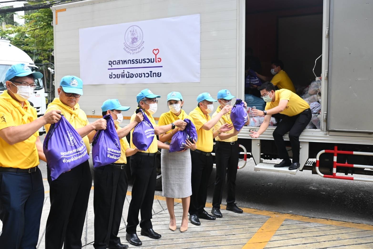 นายณัฐพล รังสิตพล ปลัดกระทรวงอุตสาหกรรม กล่าวว่า สำหรับวันนี้นับเป็นฤกษ์ดีในการดีเดย์เปิดกิจกรรม “อุตสาหกรรมรวมใจ ช่วยพี่น้องชาวไทย” โดยกระทรวงอุตสาหกรรมได้ผนึกกำลังพันธมิตรภาครัฐภาคเอกชน พร้อมโรงงานอุตสาหกรรมทั่วประเทศ ปล่อยคาราวานรถขนถุงยังชีพเพื่อนำไปมอบให้ผู้ประสบอุทกภัย โดยกระทรวงฯ ได้รับความร่วมมือเป็นอย่างดีจากหน่วยงานต่าง ๆ หลั่งไหลธารน้ำใจระดมสิ่งของเครื่องใช้ อุปโภค-บริโภค ที่จำเป็น กว่า 10,000 ถุง อาทิ ข้าวสาร อาหารแห้ง บะหมี่กึ่งสำเร็จรูป น้ำตาล น้ำปลา น้ำมัน ยากันยุง ปลากระป๋อง อาหารสำเร็จรูป กระดาษทิชชู น้ำดื่ม และยารักษาโรค เป็นต้น จัดเป็นถุงยังชีพสำหรับนำไปแจกจ่าย ให้กับประชาชนที่ได้รับผลกระทบจากอุทกภัยในครั้งนี้ โดยจะเริ่มวันที่ 24 ตุลาคมนี้ ในพื้นที่จังหวัดชัยนาท จำนวน 2,000 ถุง เป็นอันดับแรกเพื่อบรรเทาความเดือดร้อนในพื้นที่ และได้ย้ำให้สำนักงานอุตสาหกรรมในจังหวัดที่ได้รับผลกระทบเร่งสำรวจพื้นที่ที่ได้รับความเดือดร้อนเพื่อนำถุงยังชีพไปมอบให้กับประชาชนโดยเร่งด่วนต่อไป