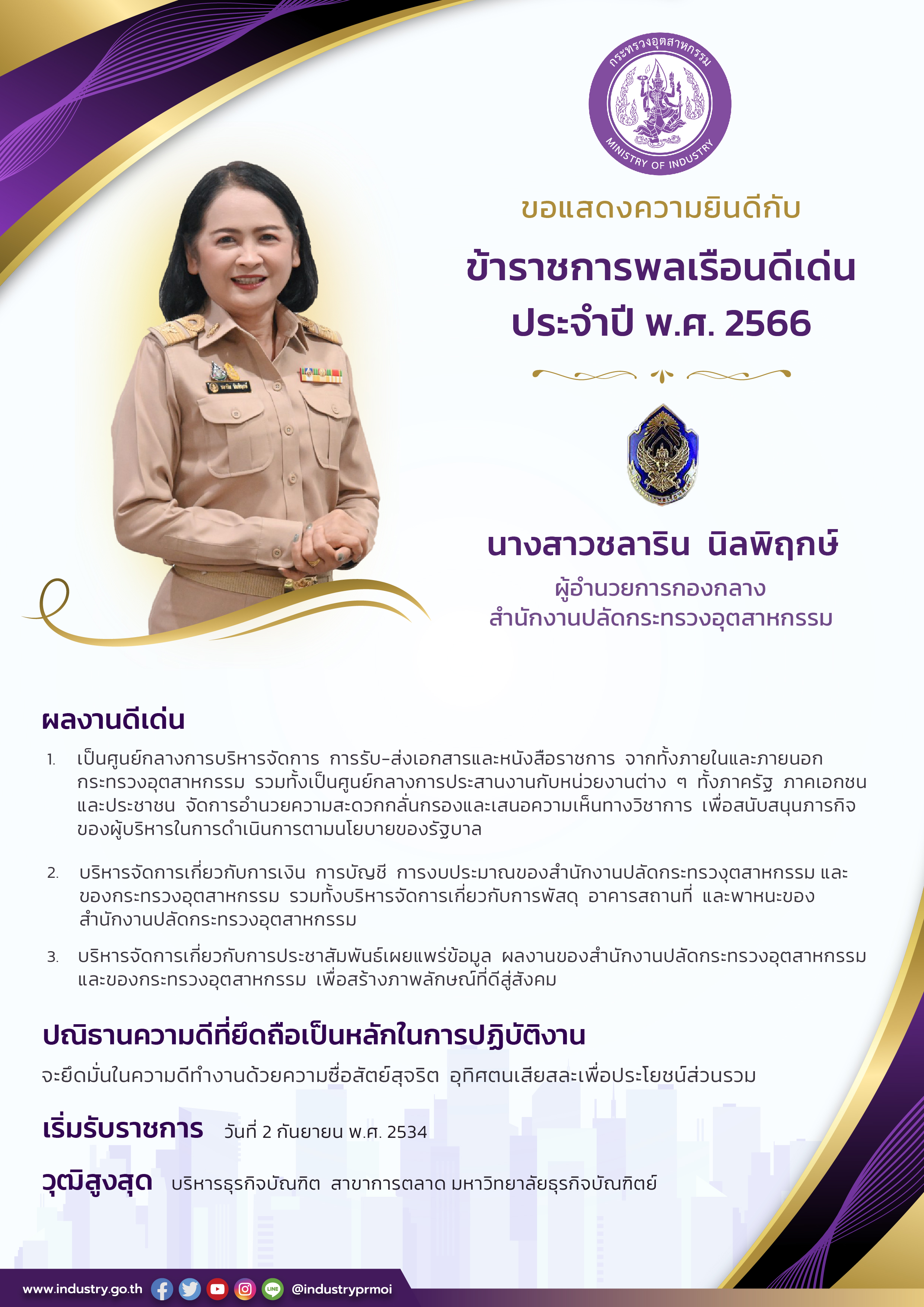ขอแสดงความยินดีกับข้าราชการพลเรือนดีเด่น สำนักงานปลัดกระทรวงอุตสาหกรรม ประจำปี พ.ศ. 2566