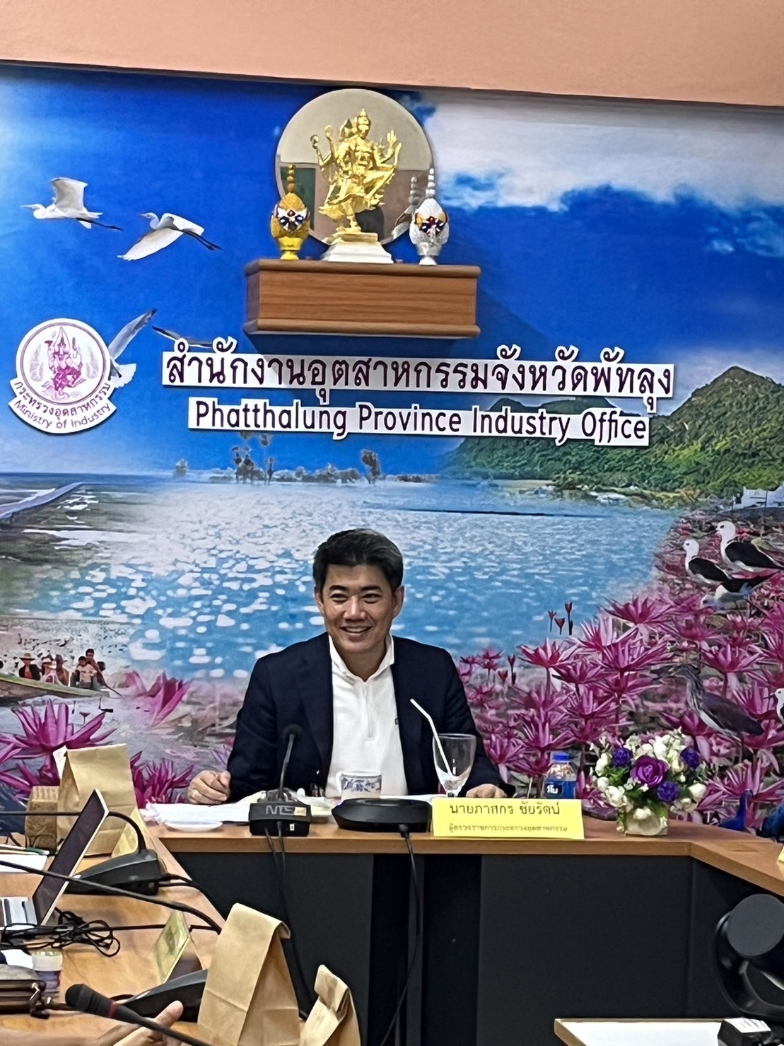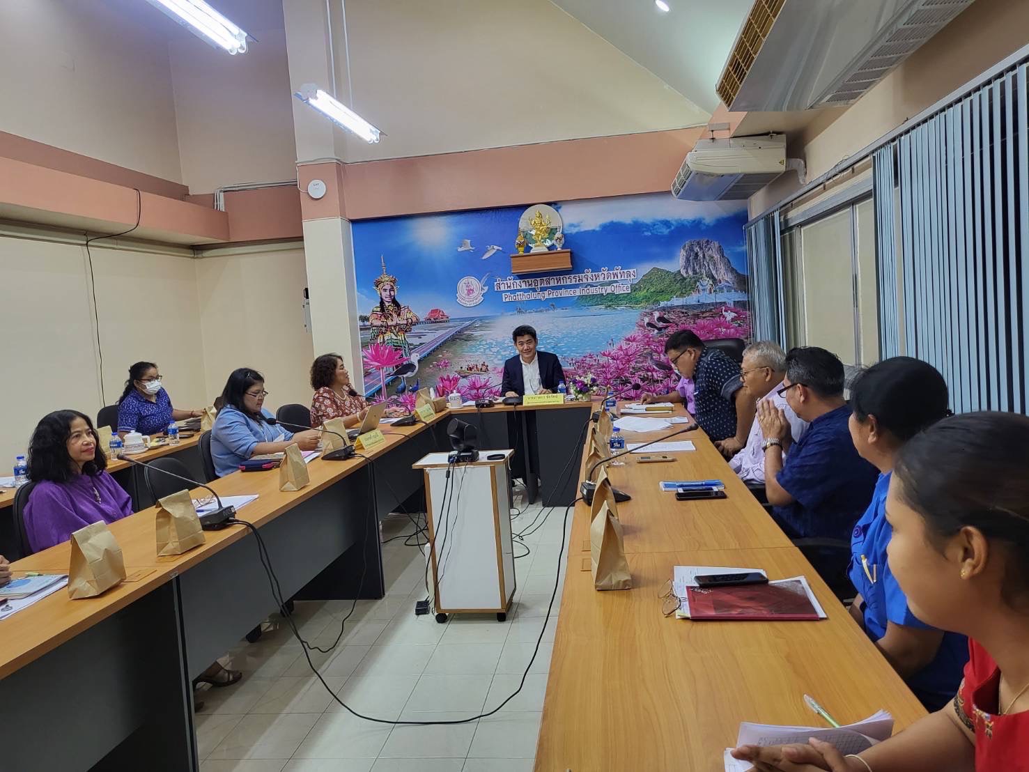 วันที่ 11-12 สิงหาคม 2566 นายภาสกร ชัยรัตน์ ผู้ตรวจราชการกระทรวงอุตสาหกรรม ลงพื้นที่ตรวจราชการกรณีปกติ รอบที่ 2 ประจำปีงบประมาณ พ.ศ. 2566 โดยมีนางดวงธิดา จันทร์พุ่ม อุตสาหกรรมจังหวัดพัทลุง พร้อมด้วยหัวหน้ากลุ่มงานและเจ้าหน้าที่สำนักงานอุตสาหกรรมจังหวัดพัทลุง (สอจ.พัทลุง) เข้าร่วมประชุม ณ ห้องประชุมชั้น 2 สำนักงานอุตสาหกรรมจังหวัดพัทลุง ทั้งนี้ ผู้ตรวจฯ ภาสกร ได้ชี้แจงนโยบายและแผนการตรวจราชการและเน้นย้ำให้เจ้าหน้าที่ทุกคนดำเนินงานตามนโยบาย MIND ทั้ง 4 มิติ และเน้นย้ำให้ สอจ.พัทลุง กำกับดูแลโรงงานในเขตพื้นที่ให้รายงานข้อมูลต่อกระทรวงอุตสาหกรรม (อก.) ผ่านขั้นตอนระบบการลงทะเบียนลูกค้า อก. (i-Industry) และระบบการรายงานข้อมูลกลาง (i-SingleForm) พร้อมทั้งรับฟังการรายงานผลการปฏิบัติงานของ สอจ.พัทลุง ซึ่งได้ดำเนินการให้เป็นไปตามเป้าหมายที่กำหนด