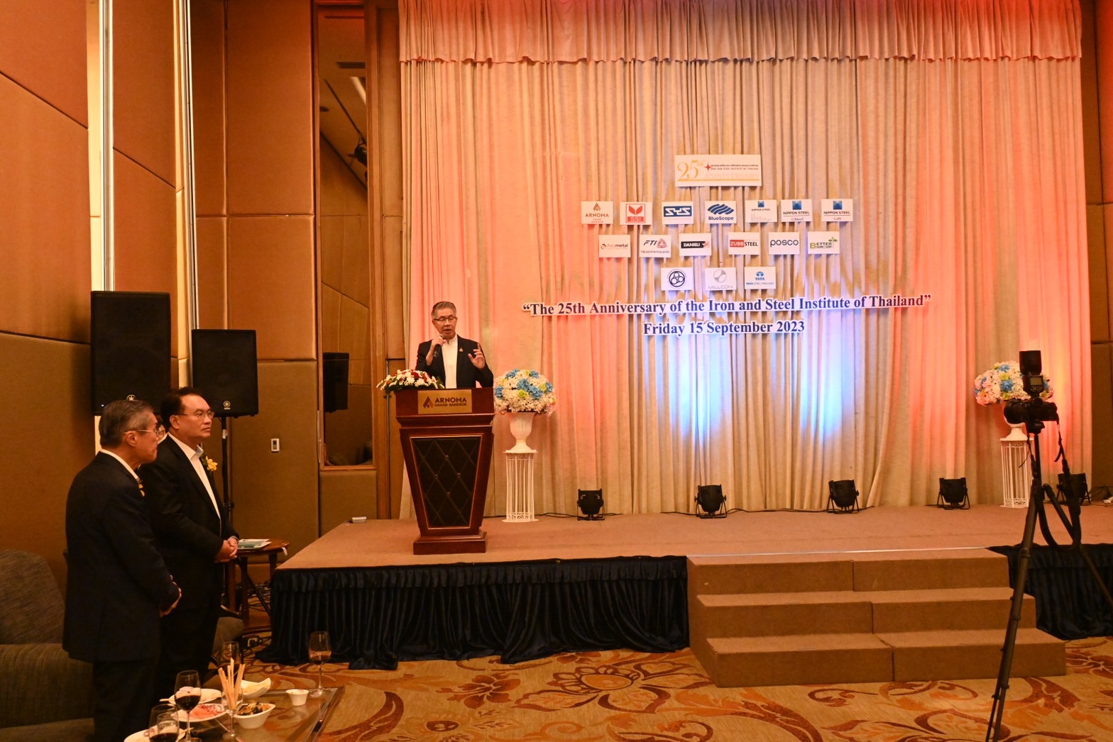 ปลัดกระทรวงอุตสาหกรรม กล่าวว่า ปูน เหล็ก คืออุตสาหกรรมสร้างประเทศและมีการต่อยอดไปสู่อุตสาหกรรมพื้นฐานของวัตถุดิบที่สำคัญไม่ว่าจะเป็นอุตสาหกรรมรถยนต์ อุตสาหกรรมอิเล็กทรอนิกส์ ซึ่งคิดเป็น 30% ของภาคอุตสาหกรรมทั้งหมดของประเทศ และตลอดระยะเวลา 25 ปี ที่สถาบันเหล็กและเหล็กกล้าแห่งประเทศไทย ได้ฝ่าฟันอุปสรรคต่างๆ มามากมาย ทั้งการแข่งขันจากต่างประเทศ และการพัฒนาอุตสาหกรรมเหล็กในปัจจุบัน ผมคิดว่าจะมีทิศทางที่สามารถเดินหน้าต่อไปได้เป็นอย่างดี โดยเฉพาะเรื่องการพัฒนา "Green Steel” ที่ทุกท่านได้เข้าร่วมรับฟังจากการสัมมนาในวันนี้ เป็นความท้าทายของอุตสาหกรรมเหล็กไทยในบริบทใหม่ สู่การพัฒนาที่ต้องเร่งดำเนินการ ทั้งนี้ที่ผ่านมากระทรวงอุตสาหกรรม ยังได้ออกมาตรการช่วยเหลืออุตสาหกรรมเหล็กให้สามารถแข่งขันได้ในตลาดโลกอยู่ตลอด โอกาสนี้ ผมขอแสดงความยินดี และขอชื่นชมผลงานของสถาบันฯ ที่เปรียบเสมือนฟันเฟืองในการพัฒนาภาคอุตสาหกรรม และขอส่งความปรารถนาดีมายังผู้บริหาร เจ้าหน้าที่ และผู้ที่มีส่วนเกี่ยวข้องทุกท่าน และขออาราธนาอำนาจแห่งคุณพระศรีรัตนตรัย องค์พระนารายณ์และสิ่งศักดิ์สิทธิ์ทั้งหลาย ที่ทุกท่านให้ความเคารพนับถือ โปรดดลบันดาลให้คณะผู้บริหาร เจ้าหน้าที่ และผู้ที่มีส่วนเกี่ยวข้องทุกท่าน จงประสบแต่ความสุข ความเจริญ อุตสาหกรรมเหล็กและเหล็กกล้ามีความเข้มแข็ง สถาบันเหล็กฯ มีความยั่งยืน และเป็นกลไกที่สำคัญให้เศรษฐกิจและสังคมของประเทศไทยสืบต่อไป