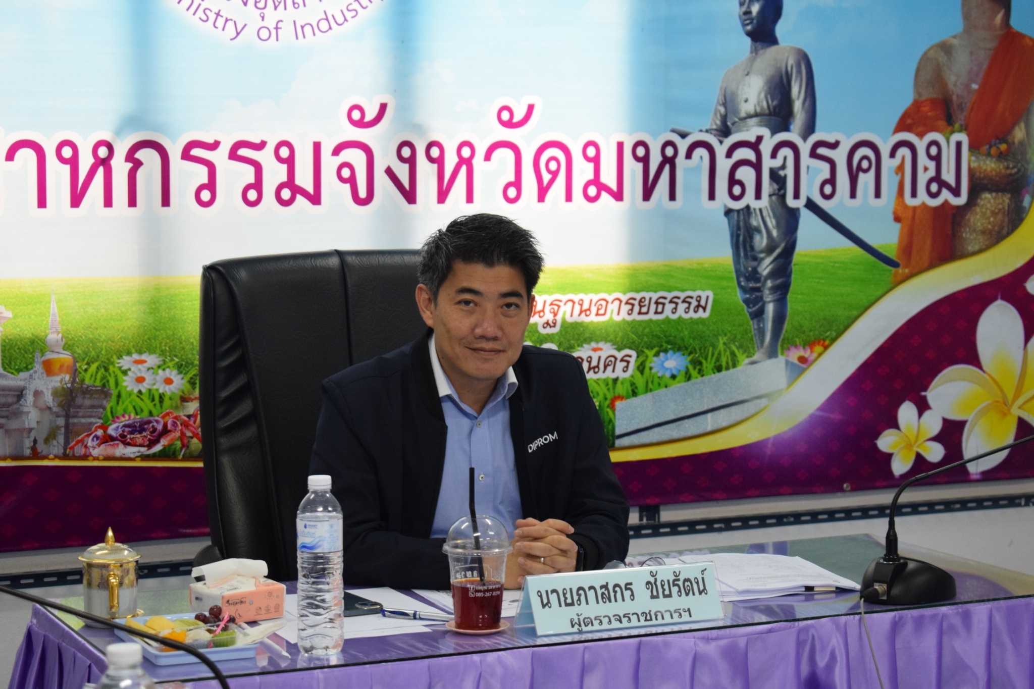 หลังจากได้ประชุมตรวจราชการเสร็จเรียบร้อยแล้ว ผู้ตรวจฯ ภาสกร ได้ขอบคุณอุตสาหกรรมจังหวัดมหาสารคาม พร้อมคณะ และให้กำลังใจเจ้าหน้าที่ทุกระดับในการช่วยกันขับเคลื่อนนโยบาย MIND ให้บรรลุเป้าหมายต่อไป