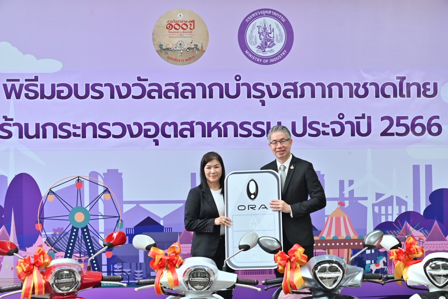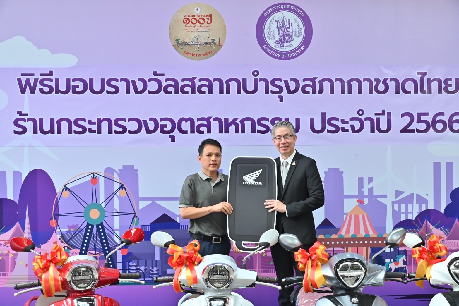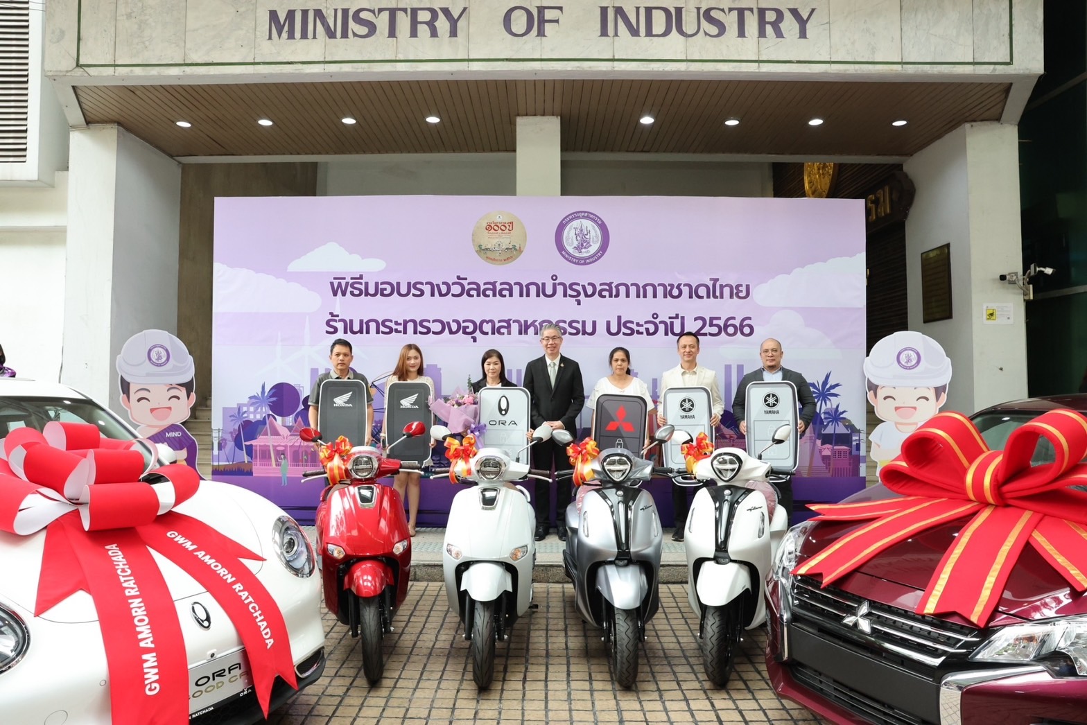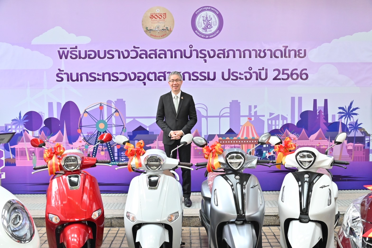 ปลัดฯ ณัฐพล กล่าวแสดงความยินดีกับผู้ได้รับรางวัล พร้อมกล่าวขอบคุณ ผู้สนับสนุนของรางวัล อาทิ บริษัท เกรท วอล มอเตอร์ , SMEs D Bank และหน่วยงานอื่นที่ร่วมให้การสนับสนุนของรางวัลของร้านกระทรวงอุตสาหกรรม โดยรายได้ทั้งหมดจากการจัดกิจกรรมภายในร้านของกระทรวงอุตสาหกรรม หลังจากหักค่าใช้จ่ายที่จำเป็นแล้ว จะนำขึ้นทูลเกล้าฯ โดยเสด็จพระราชกุศล และเพื่อบำรุงสภากาชาดไทย เพื่อนำไปใช้ในโครงการต่างๆที่เป็นสาธารณประโยชน์ต่อไป สำหรับรางวัลสลากบำรุงสภากาชาดไทย ร้านกระทรวงอุตสาหกรรม ประจำปี 2566 ที่ได้ทำพิธีมอบในวันนี้ (30 ม.ค.67) มีทั้งสิ้น 6 รางวัล ประกอบด้วย รางวัลที่ 1 รถยนต์ รุ่น ORA GOODCAT รางวัลที่ 2 รถยนต์ MITSUBISHI MIRAGE รางวัลที่ 3 รถจักรยานยนต์ HONDA GIORNO +125 จำนวน 2 คัน และรถจักรยานยนต์ YAMAHA GRAND FILANI HYBRID จำนวน 2 คัน