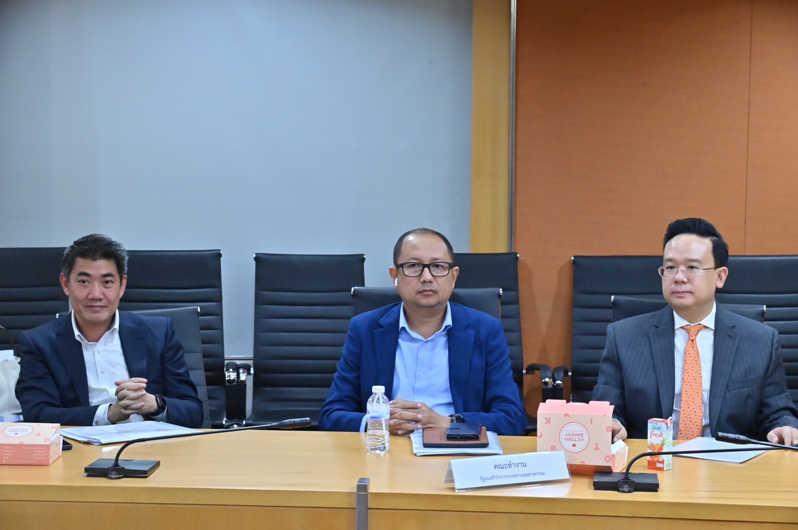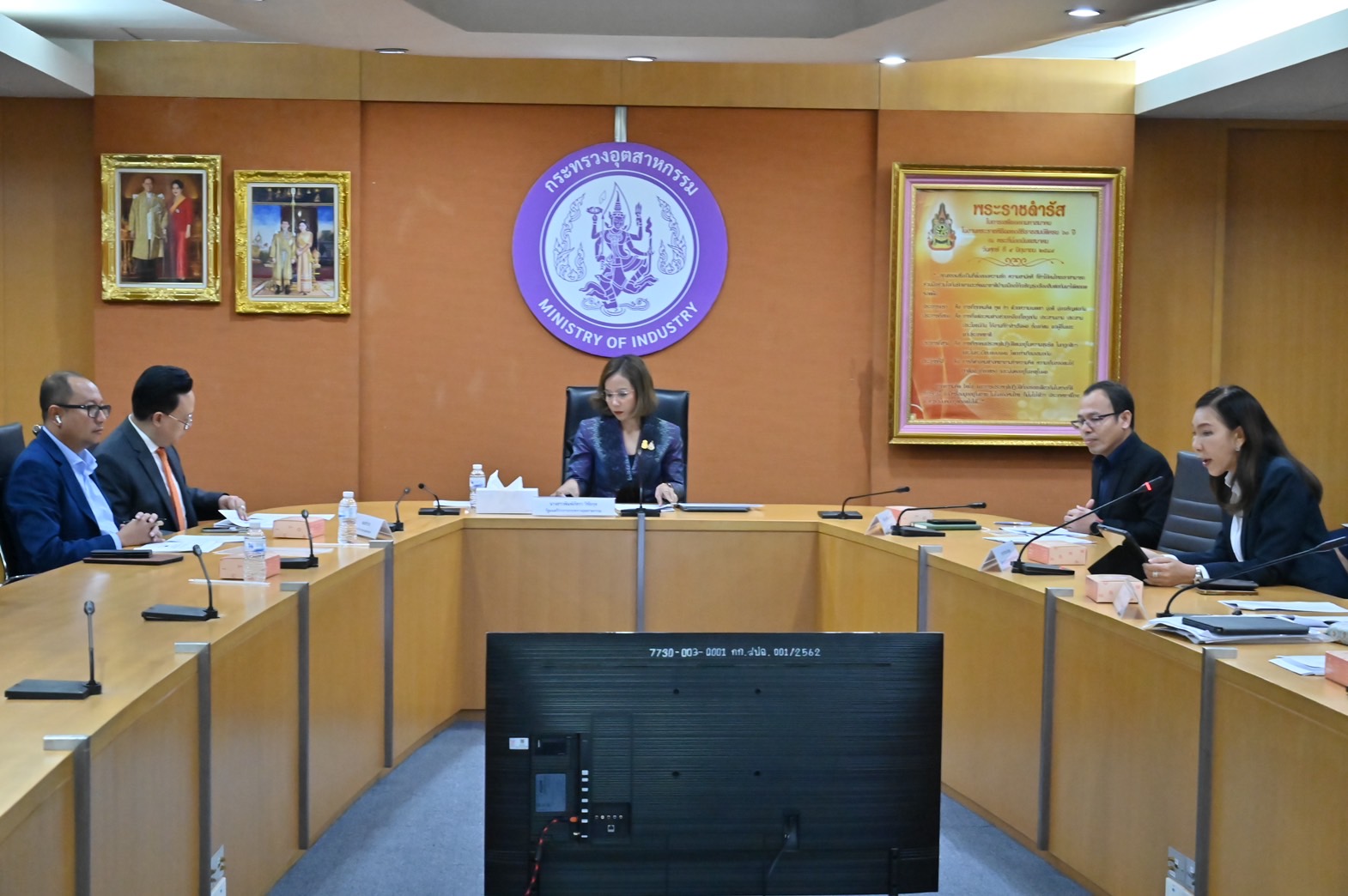 นายใบน้อย สุวรรณชาตรี รองปลัดกระทรวงอุตสาหกรรม ในฐานะหัวหน้ากลุ่มภารกิจด้านเศรษฐกิจอุตสาหกรรม นางวรวรรณ ชิตอรุณ ผู้อำนวยการสำนักงานเศรษฐกิจอุตสาหกรรม และนายภาสกร ชัยรัตน์ อธิบดีกรมส่งเสริมอุตสาหกรรม พร้อมด้วยผู้บริหารหน่วยงานที่เกี่ยวข้อง เข้าร่วมประชุม ณ ห้องประชุมชุณหะวัณ สำนักงานปลัดกระทรวงอุตสาหกรรม และผ่านสื่อเล็กทรอนิกส์ โปรแกรม Zoom