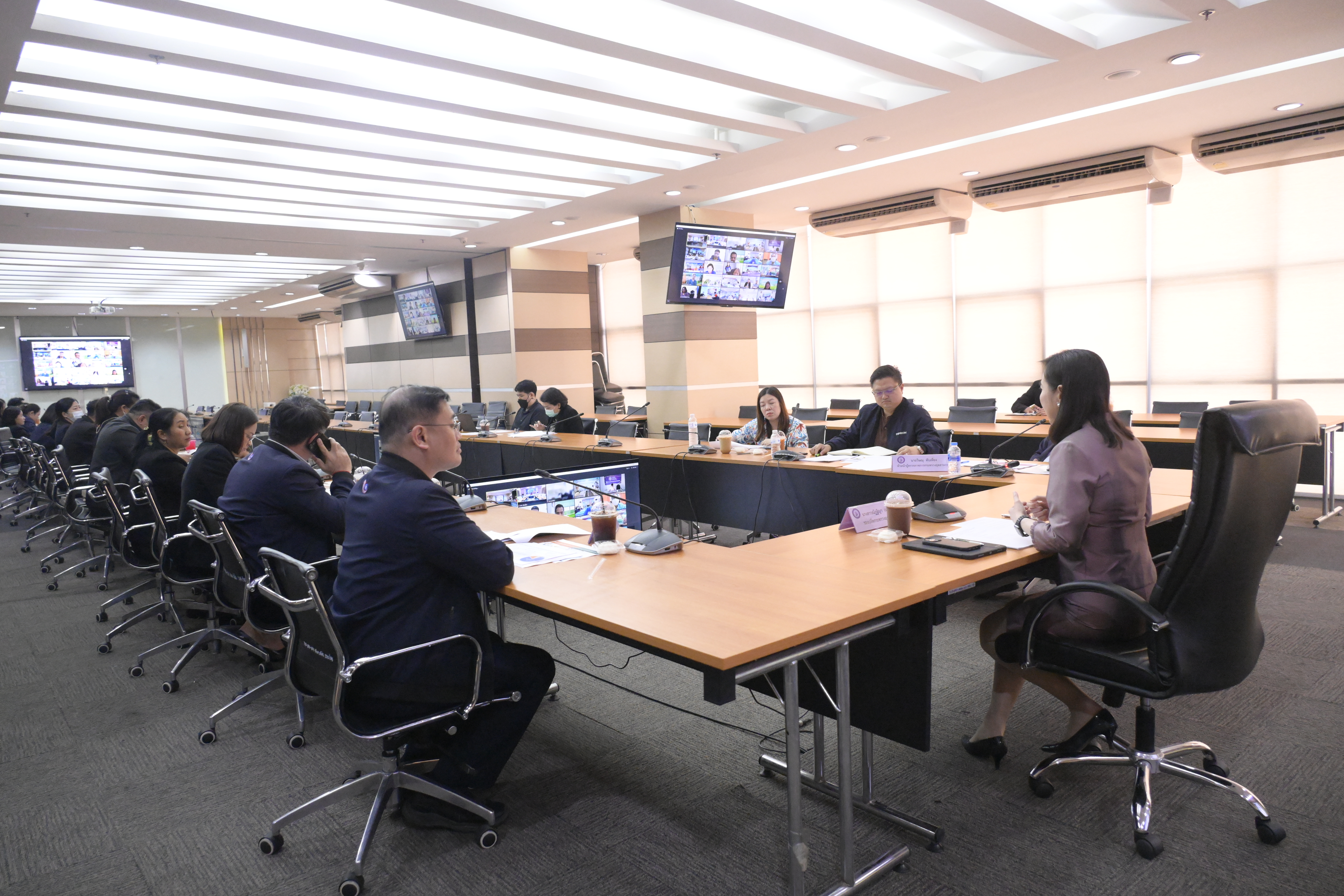 รปอ.ณัฏฐิญา นั่งหัวโต้ะประชุมชี้แจงแนวทางการดำเนินโครงการ/กิจกรรม งบประมาณรายจ่ายประจำปีงบประมาณ พ.ศ. 2566 ไปพลางก่อน (งบประมาณเบิกแทนกัน) ให้ สอจ. ทั่วประเทศ