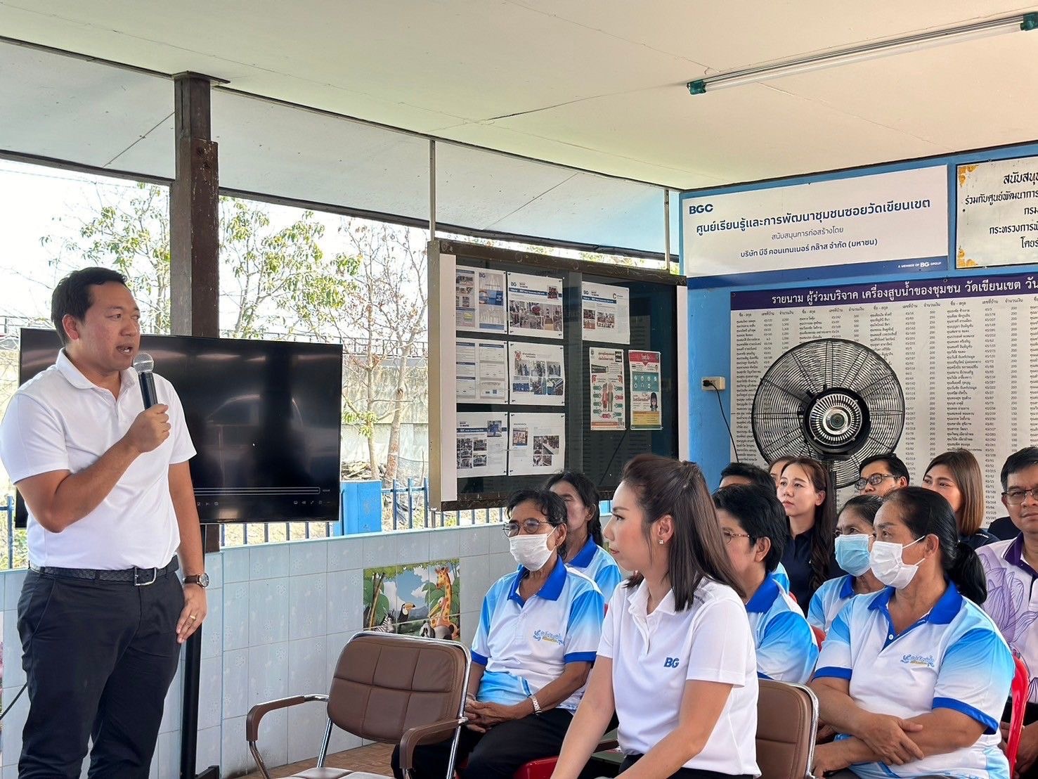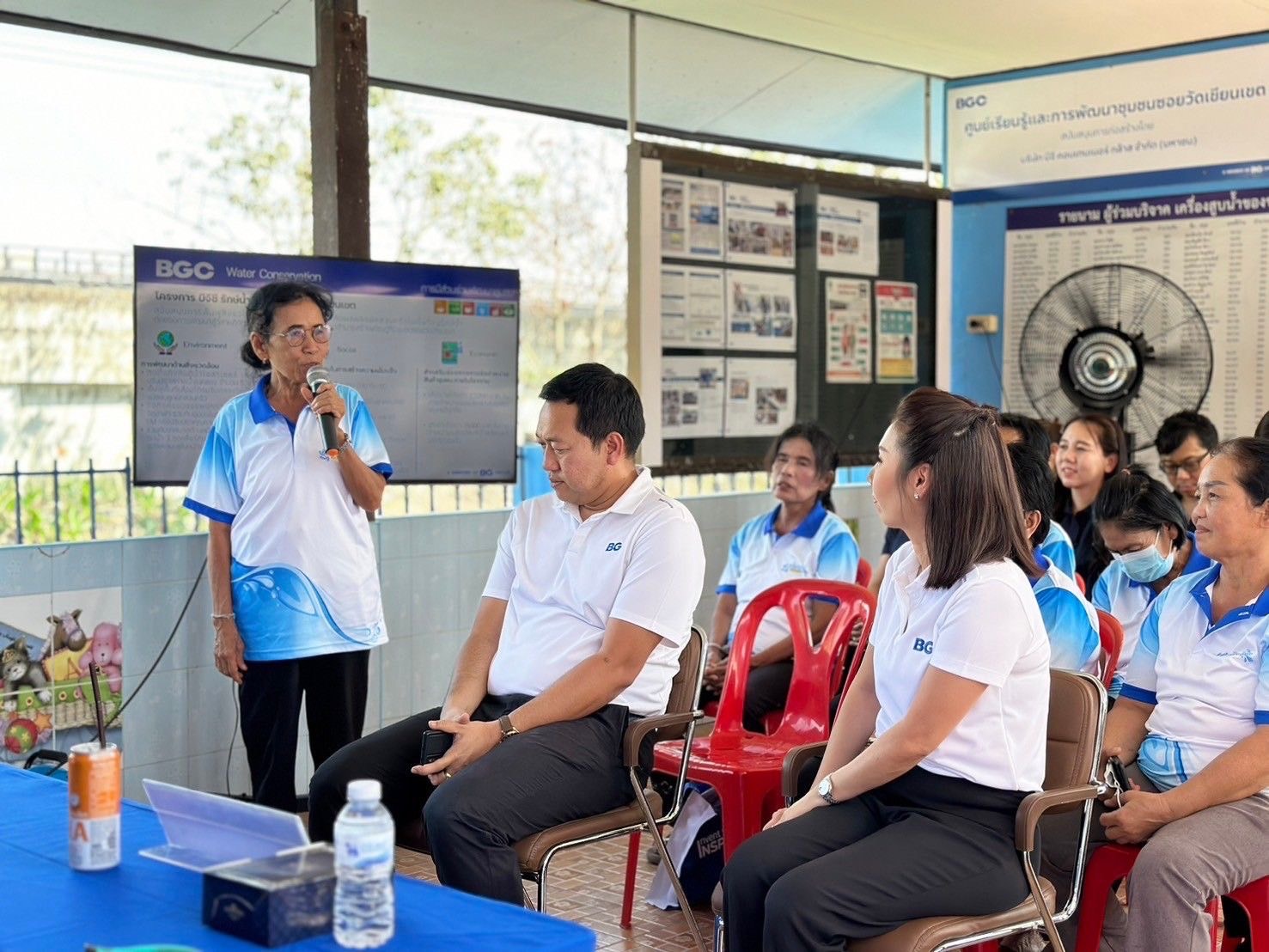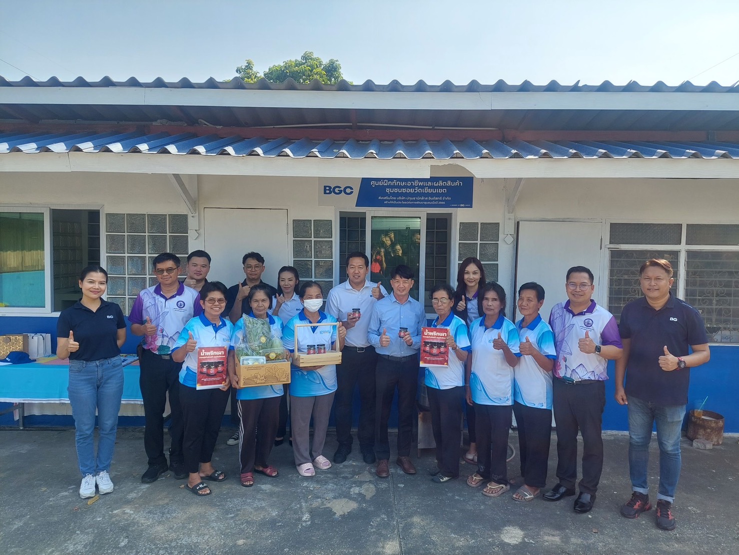 เวลา 13.30 น. ผู้ตรวจราชการฯวีระกิตติ์ฯ และคณะ ลงพื้นที่เยี่ยมชมวิสาหกิจชุมชนบ้านรักษ์น้ำเกษตรอินทรีย์ ซอยวัดเขียนเขต อำเภอเมืองปทุมธานี จังหวัดปทุมธานี ซึ่งดำเนินการทำผลิตภัณฑ์น้ำพริกเผาจำหน่ายและสร้างเศรษฐกิจให้กับชุมชน โดยมีบริษัท ปทุมธานีกล๊าส จำกัด ซึ่งเป็นโรงงานอุตสาหกรรมในพื้นที่ที่ให้การสนับสนุนโรงเรือนสำหรับการผลิต และฟื้นฟูสิ่งแวดล้อมแหล่งน้ำในชุมชนให้เกิดผลผลิตเป็นผักสวนครัวในพื้นที่อนุรักษ์น้ำ พร้อมส่งเสริมช่องทางการจัดจำหน่ายสินค้าภายในโรงงาน สร้างรายได้ให้กับชุมชนไม่น้อยกว่าปีละ 40,000 บาท และทาง สอจ.ปทุมธานีได้ต่อยอดการพัฒนาสู่วิสาหกิจชุม และประสานกรมส่งเสริมอุตสาหกรรมมาช่วยพัฒนาผลิตภัณฑ์ และได้แนะนำสถานประกอบการให้ดำเนินกิจการสอดคล้องกับนโยบาย MIND 4 มิติ เพื่อให้ชุมชนในพื้นที่รอบสถานประกอบการมีชีวิตความเป็นอยู่ที่ดีขึ้นต่อไป
