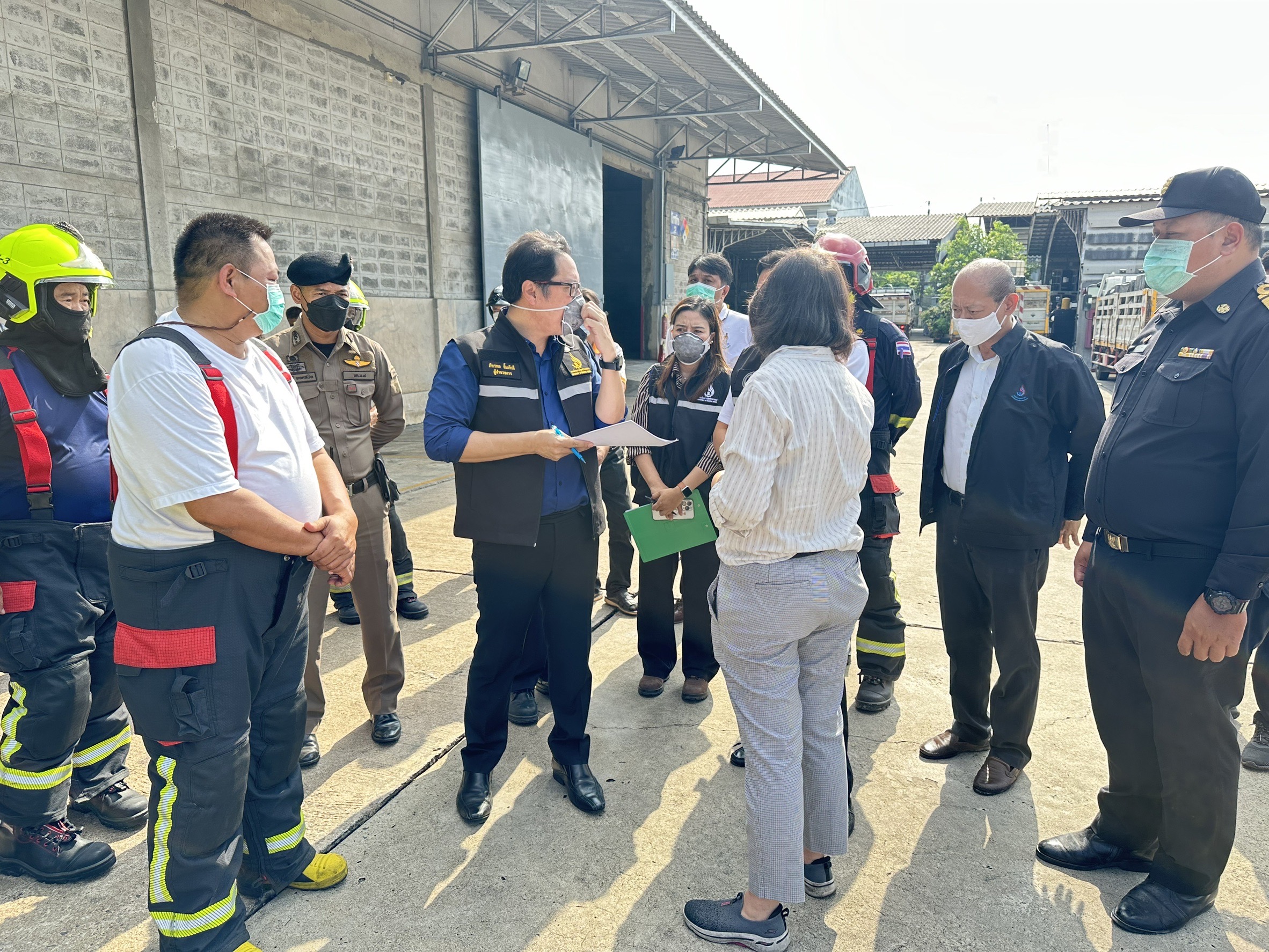 โดยเมื่อช่วงเช้าที่ผ่านมา นางสาวพิมพ์ภัทรา วิชัยกุล รัฐมนตรีว่าการกระทรวงอุตสาหกรรม ได้สั่งการให้ปลัดกระทรวงอุตสาหกรรม และอธิบดีกรมโรงงานอุตสาหกรรม ให้ตรวจสอบถึงสาเหตุ และได้รายงานให้ทราบว่า สถานที่เกิดเหตุคือ อาคารเก็บสารเคมีของบริษัท เพรสซิเดนท์เคมีภัณฑ์ จำกัด ไม่เข้าข่ายเป็นโรงงานตามกฎหมายว่าด้วยโรงงาน ส่วนกลุ่มควันสีขาวเกิดจาก สารเคมี 2 ถังในอาคารหลังดังกล่าว เจ้าหน้าที่จึงทำการขนย้ายสารเคมีในกลุ่มเดียวกันออกมาด้านนอกอาคาร และใช้น้ำในการควบคุมควันที่เกิดขึ้น และเมื่อเจ้าหน้าที่ทำการเปิดบรรจุภัณฑ์เมื่อสารเคมีกระทบอากาศทำให้เกิดไฟลุกไหม้ภายในถัง จึงเร่งควบคุมเพลิงเพื่อไม่ให้สารเคมีแพร่กระจาย โดยใช้เวลาประมาณ 45 นาที