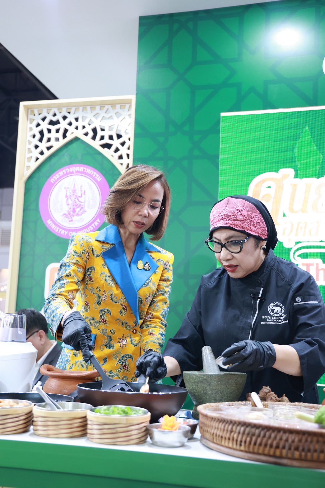สำหรับงานในวันนี้ กระทรวงฯ ได้นำผู้ประกอบการที่ได้รับการพัฒนาผลิตภัณฑ์ร่วมกับกรมส่งเสริมอุตสาหกรรมและสถาบันอาหารกว่า 40 รายเข้าร่วมแสดงสินค้า เช่น โรงงานแปรรูปโคเนื้อฮาลาลมาตรฐานสากลที่มีศักยภาพดีที่สุดในอาเซียน “Befish” ข้าวเกรียบปลาเมืองนราธิวาส ทำจากปลาทะเลแท้ มีแคลเซียมสูง และ “ท่าทองรังนก” ที่เลี้ยงอย่างธรรมชาติไม่ใช้สารเคมีวัตถุเจือปนอาหาร เป็นต้น ซึ่งล้วนเป็นผลิตภัณฑ์ที่มีศักยภาพพร้อมส่งออก และมีการสาธิตการทำอาหารจากเชฟนูรอ โซ๊ะมณี สเต็ปเป้ เชฟอาหารไทยมุสลิม ผู้ก่อตั้งและเจ้าของร้าน “Blue Elephant” ร้านอาหารไทยชื่อดังที่มีสาขาทั่วโลก เพื่อสร้างความรับรู้ถึงศักยภาพของอาหารฮาลาลไทยและนำเสนอผลิตภัณฑ์ฮาลาลจากผู้ประกอบการที่ประสบความสำเร็จ นอกจากนี้ ยังจัด Business matching เพื่อขยายตลาดให้กับผู้ประกอบการ โดยมีประมาณการมูลค่าการเจรจาจับคู่ธุรกิจภายในงาน 200 ล้านบาท โดยกระทรวงอุตสาหกรรมจะเสริมความเข้มแข็งและผลักดันการส่งออกสู่ตลาดโลกต่อไป
