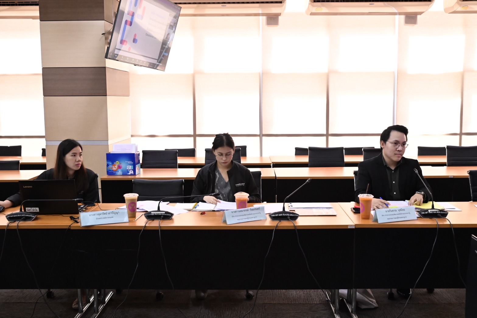 รองปลัดฯ บรรจง นั่งหัวโต๊ะ พิจารณาคุณสมบัติของผู้ประกอบการเอสเอ็มอีที่ยื่นขอสินเชื่อโครงการลดโลกร้อน (กรุงเทพมหานคร)