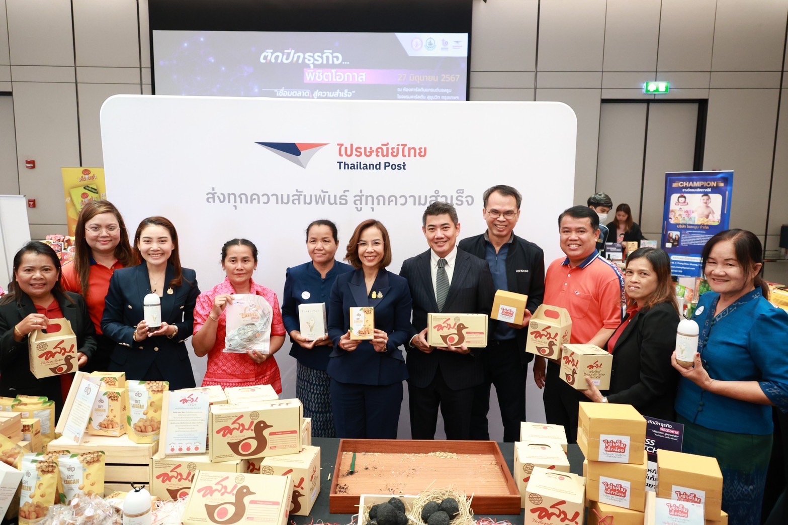 ดร.ดนันท์ สุภัทรพันธุ์ กรรมการผู้จัดการใหญ่ บริษัท ไปรษณีย์ไทย จำกัด กล่าวว่า ไปรษณีย์ไทย ในฐานะหน่วยงานสื่อสารและขนส่งของชาติพร้อมสนับสนุนการเติบโตของผู้ประกอบการไทยในการช่วยขน และช่วยขายสินค้าผ่านเครือข่ายไปรษณีย์ พร้อมทั้งมีบริการอำนวยความสะดวกในการจัดการด้านโลจิสติกส์และคลังสินค้าช่วย “เก็บ แพ็ค ส่ง” รองรับการขยายตัวของธุรกิจ e-Commerce ในส่วนของลูกค้ากลุ่มธุรกิจ B2B และ B2C ที่เติบโตขึ้นอย่างต่อเนื่อง และเพื่อเป็นการอำนวยความสะดวกให้ผู้ประกอบการสามารถจัดการธุรกิจได้อย่างมืออาชีพ นอกจากนี้ไปรษณีย์ไทยยังพร้อมช่วยผลักดันสินค้าเหล่านี้ให้ถึงมือผู้บริโภคทั่วประเทศผ่านเครือข่ายไปรษณีย์กว่า 50,000 แห่งครอบคลุมทั่วประเทศ เว็บไซต์ ThailandPostMart ซึ่งเป็นแพลตฟอร์ม e-Marketplace ของไปรษณีย์ไทยที่รวบรวมสินค้าตัวท็อปทั่วไทยกว่า 20,000 รายการ จากผู้ประกอบการกว่า 6,000 ราย และยังมีช่องทางจำหน่ายสินค้าออฟไลน์ผ่านร้านค้า ThailandPostMart 17 สาขาในพื้นที่เศรษฐกิจ ได้แก่ ไปรษณีย์กลาง เคาน์เตอร์ไปรษณีย์สาขา MBK ไปรษณีย์จังหวัดอุดรธานี อุบลราชธานี นครราชสีมา บุรีรัมย์ ขอนแก่น หนองคาย เชียงใหม่ พิษณุโลก ราชบุรี กระบี่ ภูเก็ต สุราษฎร์ธานี สงขลา ปัตตานี และไปรษณีย์จอมสุรางค์ ซึ่งในปีที่ผ่านมาสามารถสร้างรายได้ถึงกว่า 200 ล้านบาท อีกทั้งไปรษณีย์ไทยยังมีแผนในการให้บริการขนส่งสินค้าเข้าคลัง Amazon เพื่อขยายโอกาส ขยายช่องทางให้กับผู้ประกอบไทย ได้ส่งสินค้าไปขายยังต่างประเทศได้อีกด้วย