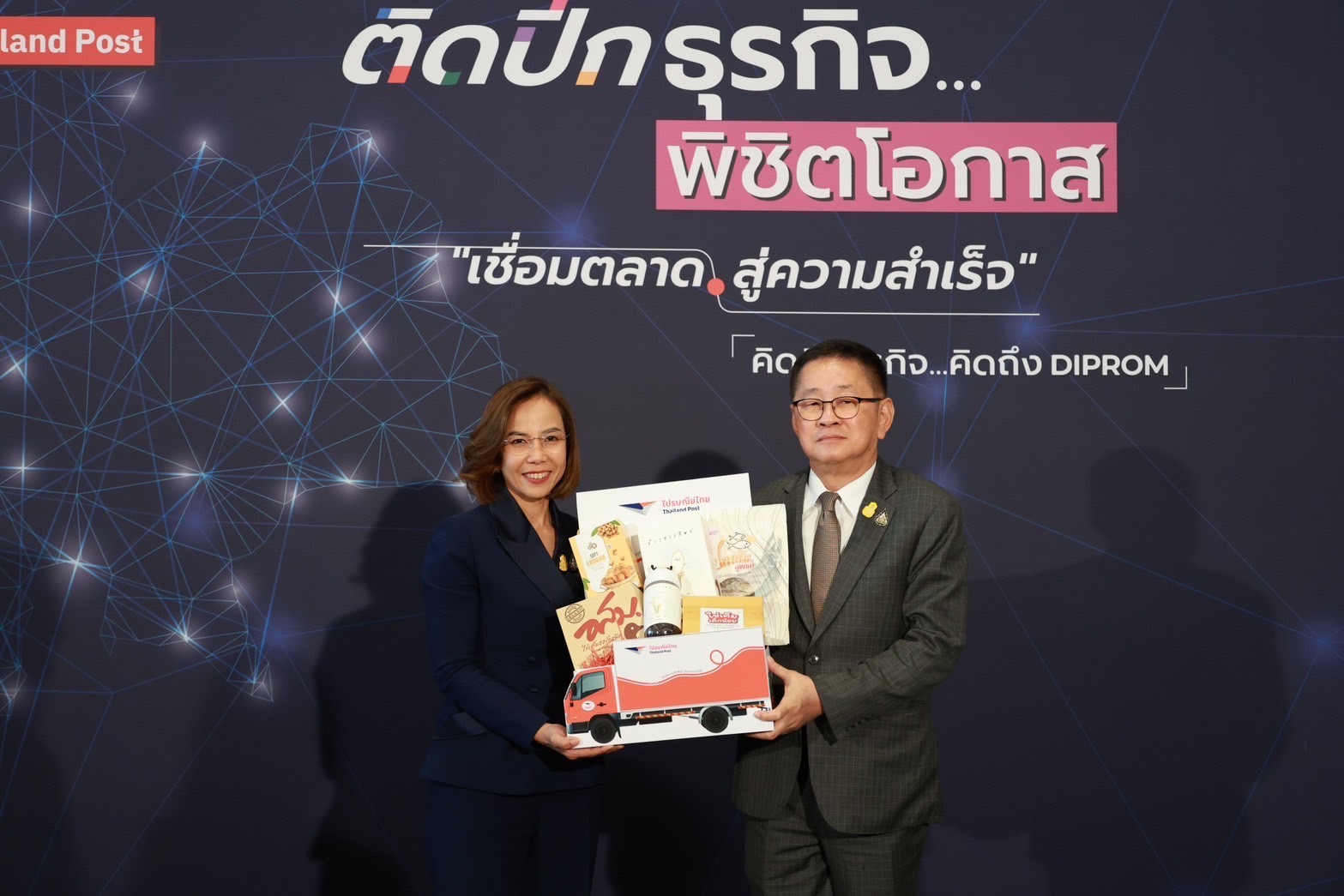 นายภาสกร ชัยรัตน์ อธิบดีกรมส่งเสริมอุตสาหกรรม เปิดเผยว่า กรมส่งเสริมอุตสาหกรรม หรือ ดีพร้อม มีทิศทางการทำงานที่สอดรับกับการเปลี่ยนแปลงของโลก ตามนโยบาย “RESHAPE THE FUTURE : โลกเปลี่ยน อุตสาหกรรมปรับ พร้อมรับอนาคต” ภายใต้แนวคิด “ชุมชนเปลี่ยน” ผ่านการบูรณาการเครือข่ายความร่วมมือ (DIPROM CONNECTION) กับบริษัท ไปรษณีย์ไทย จำกัด เพื่อพัฒนาศักยภาพและสร้างโอกาสทางการตลาดในการยกระดับขีดความสามารถวิสาหกิจไทยให้มีความยั่งยืนผ่านการเสริมสร้างองค์ความรู้ในด้านการพัฒนาผลิตภัณฑ์ กระบวนการผลิต มาตรฐาน และออกแบบบรรจุภัณฑ์ให้ทันสมัยสอดรับกับเทรนด์โลก รวมถึงมีการแลกเปลี่ยนองค์ความรู้ในการจัดเก็บสินค้า และระบบคลังสินค้า ตลอดจนได้มอบสิทธิประโยชน์อัตราพิเศษในการขนส่งสินค้าจากผู้ผลิตไปยังผู้รับปลายทางอย่างมีคุณภาพ พร้อมขยายช่องทางการจัดจำหน่ายสินค้าผ่านช่องทางออนไลน์บนเว็บไซต์ ThailandpostMart และออฟไลน์ ณ ที่ทำการไปรษณีย์และเครือข่ายพันธมิตรกว่า 50,000 แห่งทั่วประเทศ นอกจากนี้ ยังมีการส่งเสริมความร่วมมือในการบริหารจัดการวัสดุเหลือใช้ อาทิ กล่อง ซอง ขวดน้ำ ถุงพลาสติก และขยะอิเล็กทรอนิกส์ โดยได้เตรียมจุดรับวัสดุเหลือใช้เหล่านี้ให้แก่สถานประกอบการ ภายใต้โครงการ Green Hub เพื่อลดขยะในสถานประกอบการ สนับสนุนเศรษฐกิจหมุนเวียนตามหลักการ Circular Economy และขับเคลื่อนเศรษฐกิจไทยให้สามารถแข่งขันได้อย่างยั่งยืน ทั้งนี้ ความร่วมมือที่เกิดขึ้นระหว่างสองหน่วยงานจะช่วยสร้างความได้เปรียบทางการแข่งขัน และส่งเสริมการเติบโตของผู้ประกอบการ SMEs และวิสาหกิจชุมชนได้อย่างยั่งยืน ซึ่งคาดว่าจะสามารถสร้างโอกาสทางการตลาดผ่านแพลตฟอร์มต่าง ๆ ได้กว่า 200 ล้านบาท