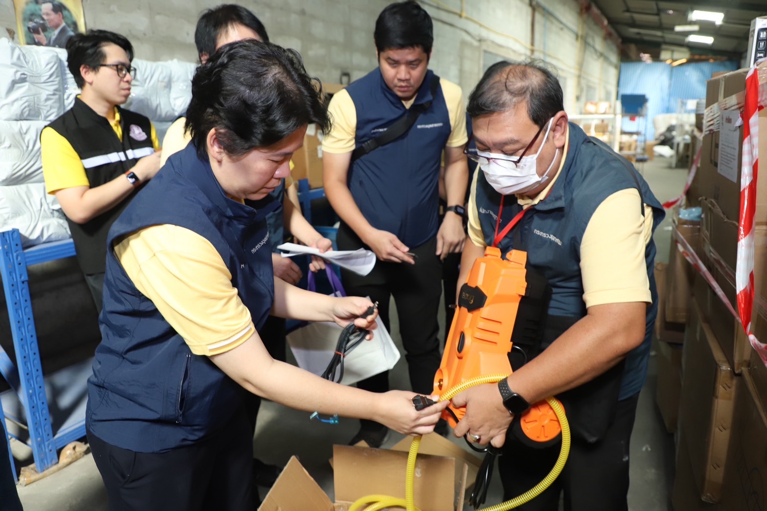 วันนี้ (25 พ.ย.67) นายเอกนัฏ พร้อมพันธุ์ รมว.อุตสาหกรรม เปิดเผยว่า กระทรวงอุตสาหกรรม ยังคงดำเนินมาตรการป้องกัน และปราบปรามสินค้าไม่ได้มาตรฐานอย่างต่อเนื่อง โดยวันนี้ได้ส่งชุดตรวจการสุดซอย กระทรวงอุตสาหกรรม นำโดย น.ส.ฐิติภัสร์ โชติเดชาชัยนันต์ หัวหน้าคณะทำงาน รมว.อุตสาหกรรม พร้อมด้วย นายเอกนิติ รมยานนท์ ผู้ตรวจราชการกระทรวงอุตสาหกรรม, นายนนทิชัย ลิขิตาภรณ์ ผู้อำนวยการกองตรวจการมาตรฐาน 1 สำนักงานมาตรฐานผลิตภัณฑ์อุตสาหกรรม (สมอ.), นางวิรงรอง พรพิมลเทพ ผู้อำนวยการกองกฎหมาย สมอ. และเจ้าหน้าที่ สมอ. เข้าตรวจสอบคลังสินค้าขนาดใหญ่แห่งหนึ่งใน อ.บางเสาธง จ.สมุทรปราการ หลังจากที่ สมอ.ตรวจพบการโฆษณาจำหน่ายสินค้าไม่มีเครื่องหมายมาตรฐานผลิตภัณฑ์อุตสาหกรรม (มอก.) ผ่านช่องทางออนไลน์ และขยายผลจากแพลตฟอร์มออนไลน์จนถึงคลังสินค้า จากการตรวจค้นพบ บริษัท จีเอ็กซ์บี โลจิสติกส์ (ไทยแลนด์) จำกัด อ.บางเสาธง จ.สมุทรปราการ สามารถตรวจยึดสินค้าที่ไม่ได้มาตรฐาน มอก.และเตรียมจำหน่ายทางช่องทางออนไลน์หลายรายการ รวมมูลค่ากว่า 4.3 ล้านบาท โดยจะดำเนินคดีกับผู้เกี่ยวข้องอย่างเด็ดขาดต่อไป