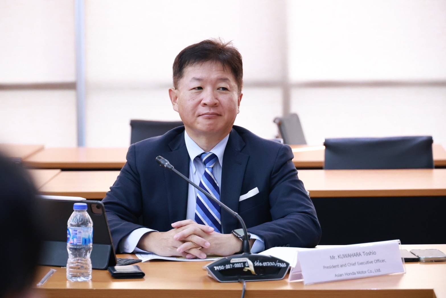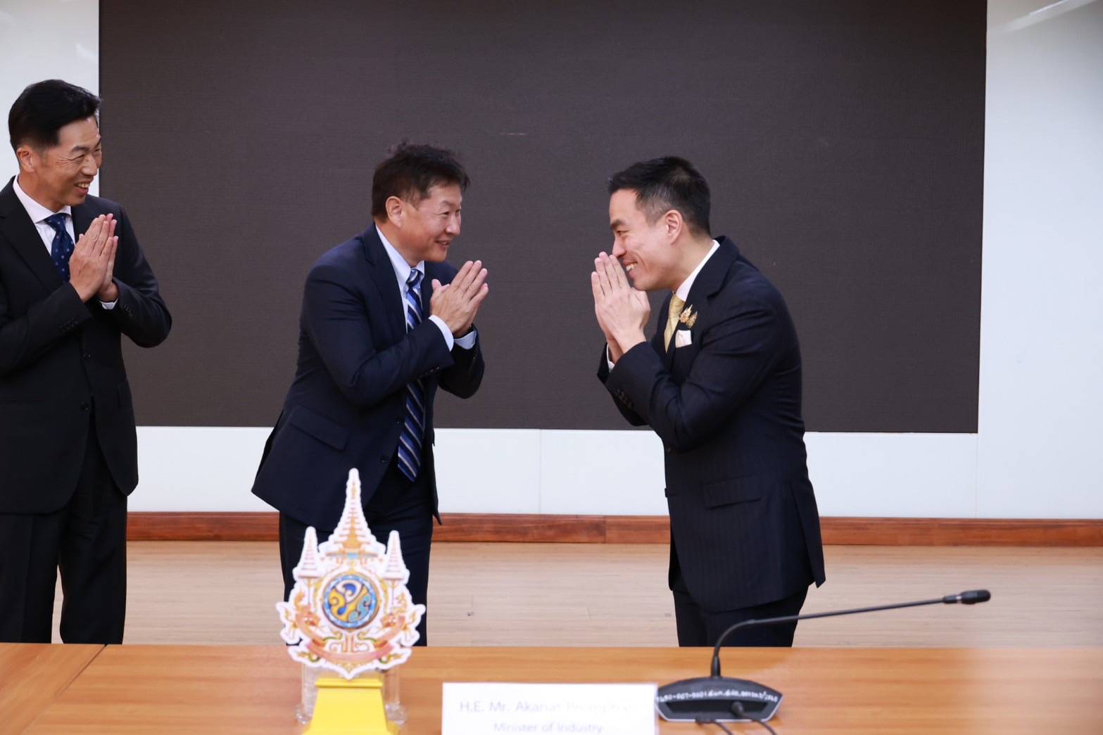 25 พฤศจิกายน 2567 นายเอกนัฏ พร้อมพันธุ์ รัฐมนตรีว่าการกระทรวงอุตสาหกรรม หารือกับนายคุวาฮาระ โทชิโอะ (Mr. KUWAHARA Toshio) ประธานกรรมการบริหารและประธานเจ้าหน้าที่บริหาร บริษัท เอเชี่ยน ฮอนด้า มอเตอร์ จำกัด นายพรวุฒิ สารสิน กรรมการบริหาร บริษัท ฮอนด้า ออโตโมบิล (ประเทศไทย) จำกัด และคณะผู้บริหารระดับสูง กลุ่มบริษัท Honda เข้าพบเพื่อแนะนำบริษัทฯ และรายงานแผนการดำเนินกิจการ และแลกเปลี่ยนความคิดเห็นด้านสถานการณ์ของอุตสาหกรรมยานยนต์ โดยมีนายพงศ์พล ยอดเมืองเจริญ เลขานุการรัฐมนตรีว่าการกระทรวงอุตสาหกรรมและโฆษกกระทรวงอุตสาหกรรม นายวิฤทธิ์ วิเศษสินธุ์ รองปลัดกระทรวงอุตสาหกรรม นายวันชัย พนมชัย เลขาธิการสำนักงานมาตรฐานผลิตภัณฑ์อุตสาหกรรม นายภาสกร ชัยรัตน์ ผู้อำนวยการสำนักงานเศรษฐกิจอุตสาหกรรม และผู้บริหารกระทรวงอุตสาหกรรม เข้าร่วมด้วย ณ ห้องประชุม อก.1 ชั้น 2 อาคารสำนักงานปลัดกระทรวงอุตสาหกรรม