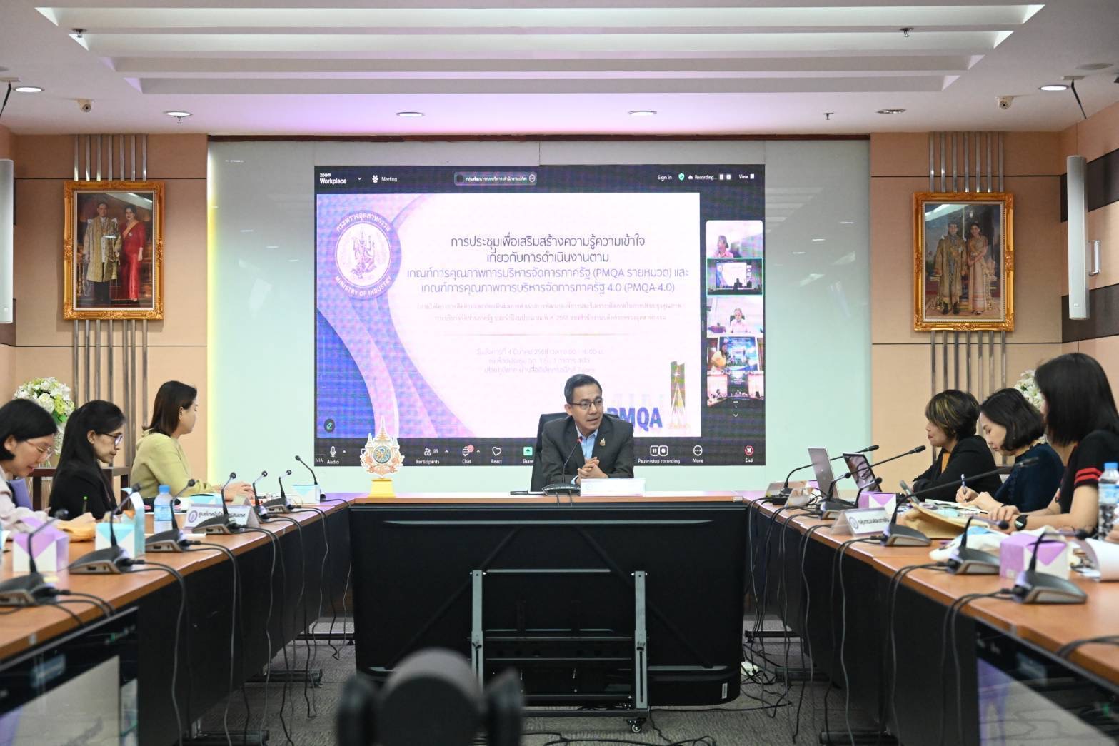 วันที่ 4 มีนาคม 2568 นายศุภกิจ บุญศิริ รองปลัดกระทรวงอุตสาหกรรม เป็นประธานพิธีเปิดโครงการติดตามและประเมินผลการดำเนินการพัฒนาองค์การ และการวิเคราะห์โอกาสในการปรับปรุงคุณภาพการบริหารจัดการภาครัฐ ประจำปีงบประมาณ พ.ศ. 2568 ของสำนักงานปลัดกระทรวงอุตสาหกรรม (สปอ.) มีวัตถุประสงค์เพื่อเสริมสร้างความรู้ความเข้าใจเกี่ยวกับแนวทางการพัฒนาคุณภาพการบริหารจัดการภาครัฐ ทั้ง PMQA รายหมวด และ PMQA 4.0 ตามที่สำนักงาน ก.พ.ร. กำหนด รวมถึงดำเนินการรวบรวมข้อมูลการดำเนินงานพัฒนาองค์การ โดยมี นางสาวสุภัตรา เปี่ยมวัตถาภรณ์ หัวหน้ากลุ่มพัฒนาระบบบริหาร กล่าวรายงาน และเจ้าหน้าที่ สปอ. เข้าร่วม ณ ห้องประชุม อก. 1 อาคาร สปอ. และการประชุมผ่านสื่ออิเล็กทรอนิกส์ (Zoom Meeting) มีผู้แทนสำนักงานอุตสาหกรรมจังหวัดทั่วประเทศร่วมด้วย
