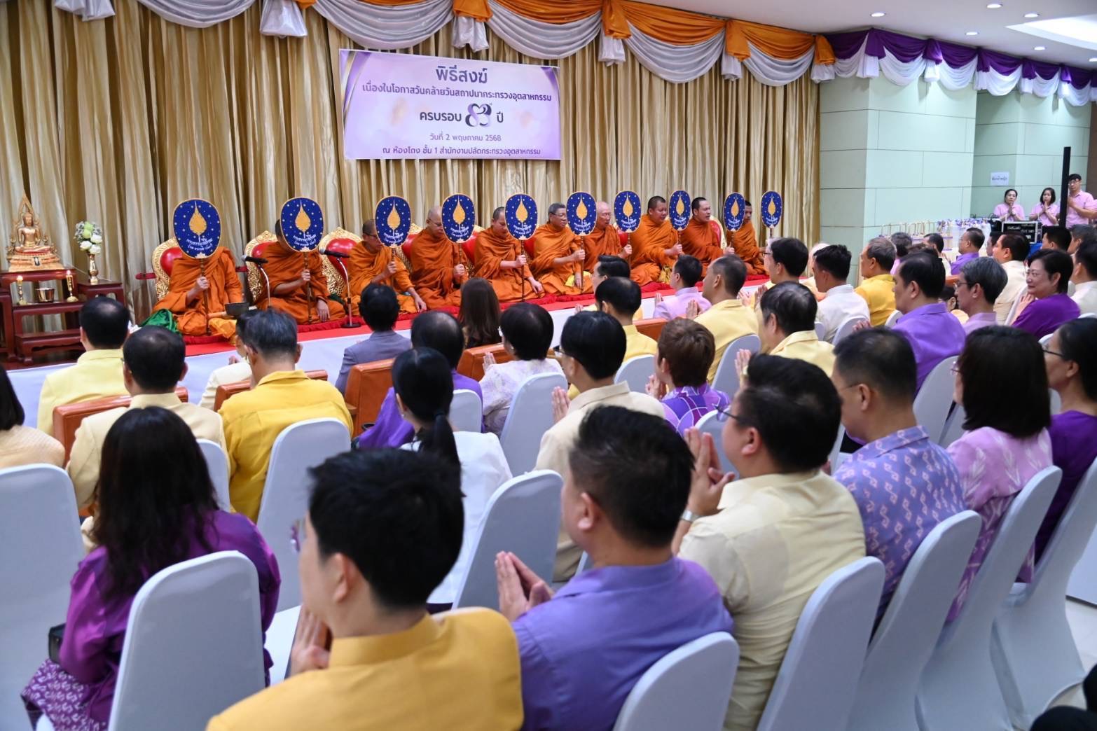 งานวันคล้ายวันสถาปนาครบรอบ 83 ปีกระทรวงอุตสาหกรรม มีพิธีพรามณ์และพิธีสงฆ์ เริ่มจากไหว้ศาลพระภูมิ การบวงสรวงองค์พระนารายณ์ซึ่งเป็นสิ่งศักดิ์สิทธิ์ประจำกระทรวง และการสวดมนต์เจริญพระพุทธมนต์ ณ ห้องโถง ชั้น 1 อาคารสำนักงานปลัดกระทรวงอุตสาหกรรม