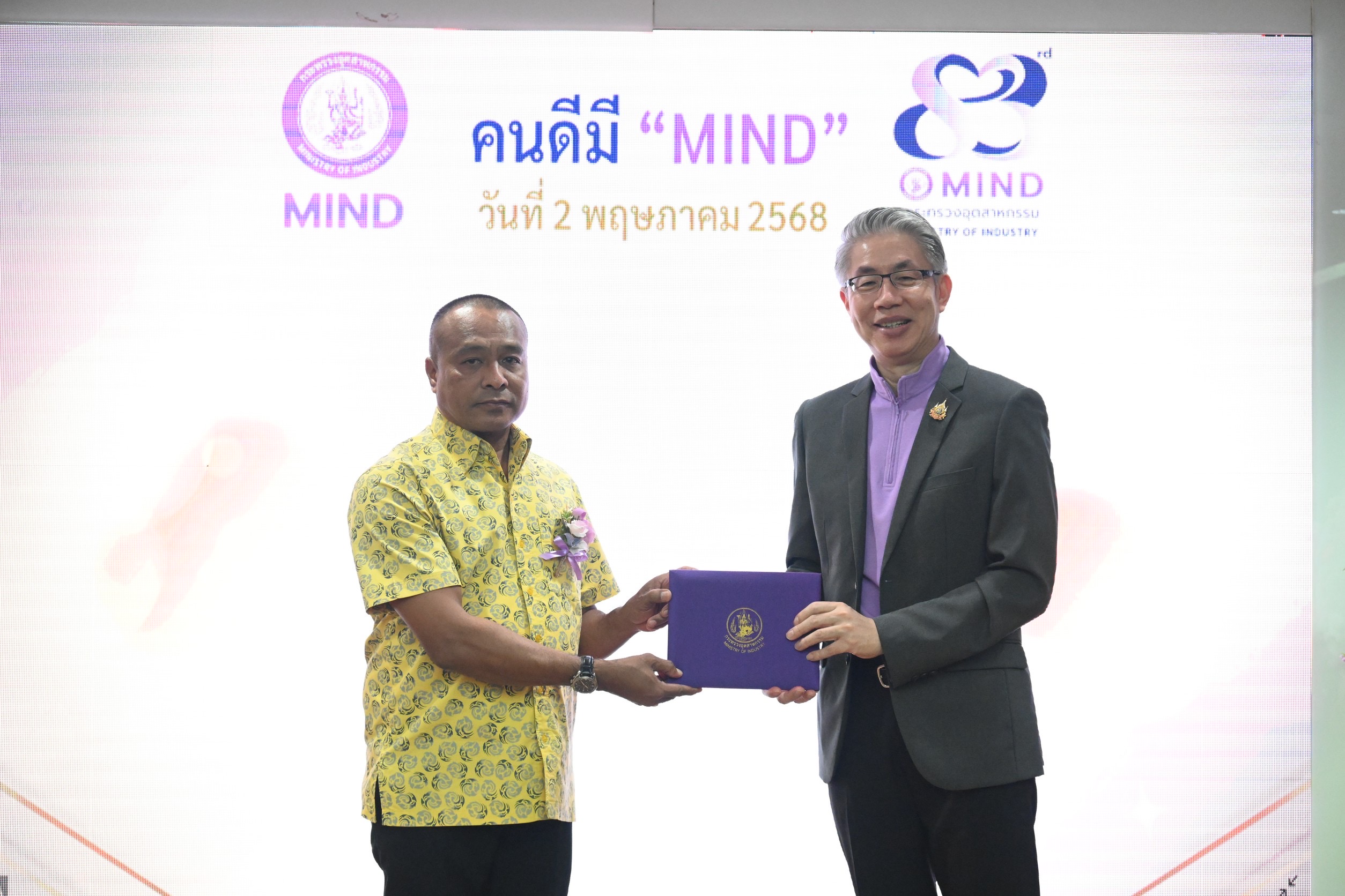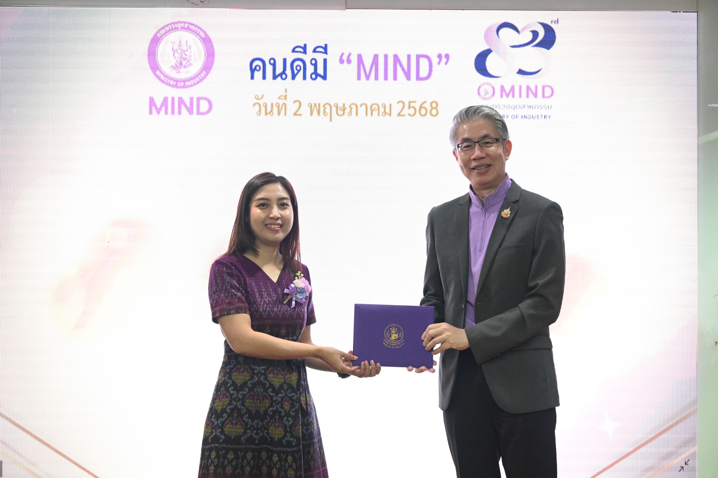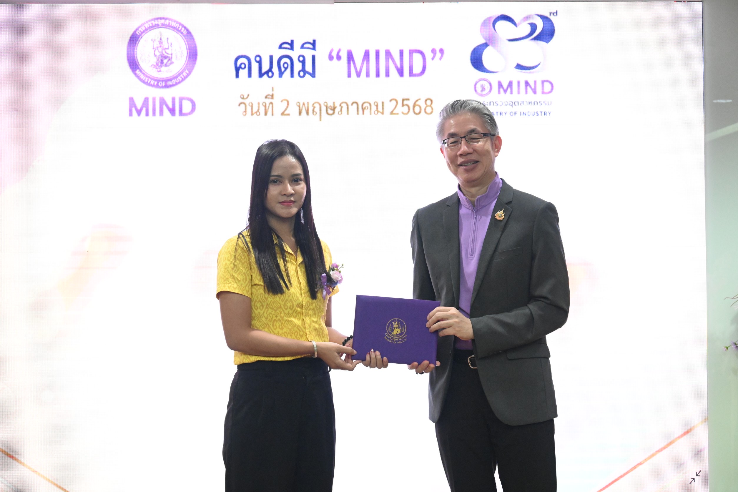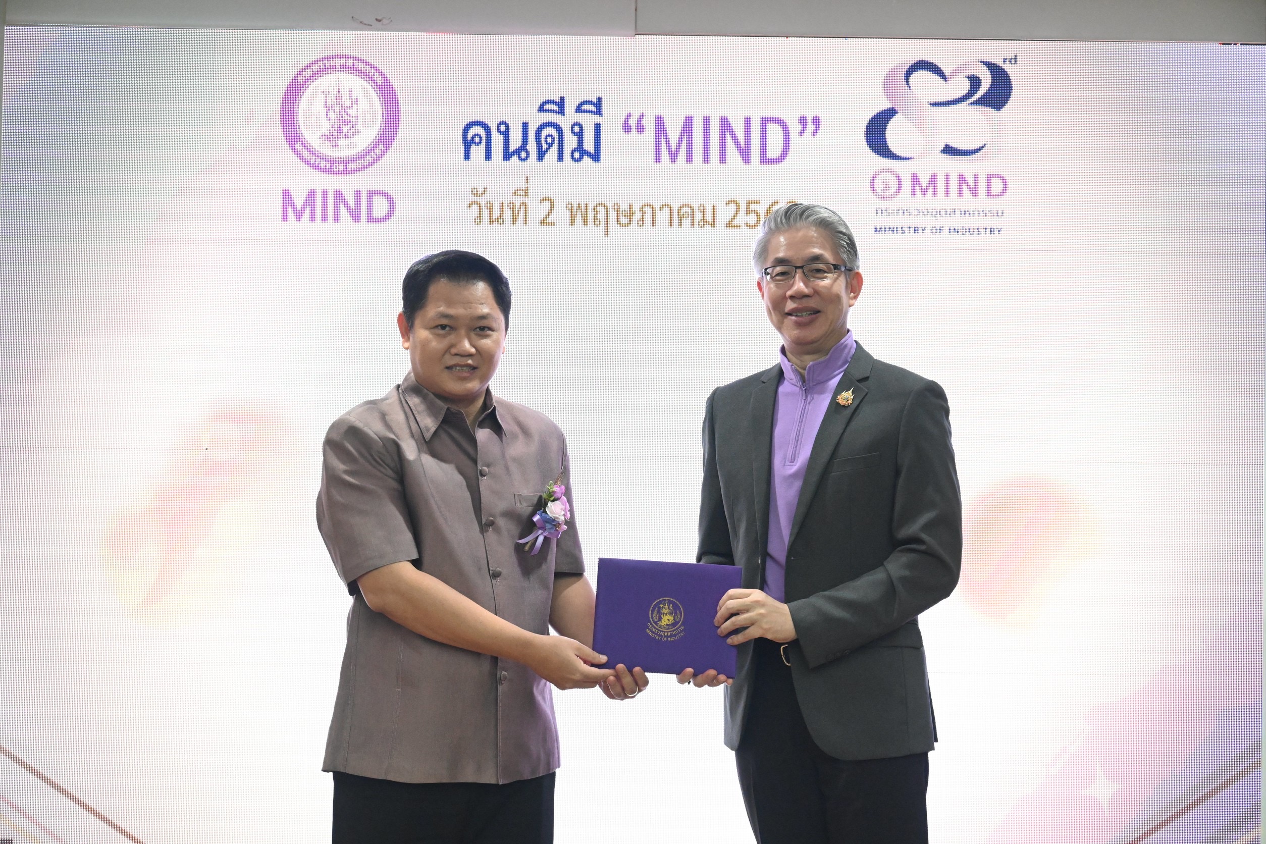 2 พฤษภาคม 2568 นายณัฐพล รังสิตพล ปลัดกระทรวงอุตสาหกรรม เป็นประธานในพิธีเปิดมอบเกียรติบัตรแก่ "คนดี มี MIND" ประจำปี พ.ศ.2567 ของสำนักงานปลัดกระทรวงอุตสาหกรรม จำนวน 14 ราย ดังนี้ 1) นางสาวสุนีย์ โสภณ ผู้อำนวยการกองบริหารทรัพยากรบุคคล 2) นายเตมีย์ พันธุวงค์ราช ผู้อำนวยการกองตรวจราชการ 3) นายอุดม สอนจิตต์ อุตสาหกรรมจังหวัดปทุมธานี 4) นางสุคนธ์ทิพย์ สินวิวัฒนากูล อุตสาหกรรมจังหวัดนครสวรรค์ 5) นายวัชรินทร์ เกาะคู นักวิชาการคอมพิวเตอร์ชำนาญการพิเศษ ศูนย์เทคโนโลยีสารสนเทศและการสื่อสาร 6) นายกฤษตฤณ เก้าเอี้ยน นักทรัพยากรบุคคลชำนาญการ กองบริหารทรัพยากรบุคคล 7) นางสาวกมลพร ศรีนวล นักวิชาการอุตสาหกรรมชำนาญการ สำนักงานอุตสาหกรรมจังหวัดประจวบคีรีขันธ์ 8 ) นายอนุสรณ์ ทัศศรี วิศวกรชำนาญการ สำนักงานอุตสาหกรรมจังหวัดบุรีรัมย์ 9) นายอนุศาสน์ อนุชัย วิศวกรปฏิบัติการ กองตรวจราชการ 10) นาวสาวสุทารัตน์ สงค์ประเสริฐ วิศวกรปฏิบัติการ สำนักงานอุตสาหกรรมจังหวัดพิจิตร 11) นางสาวนพมาศ เขื่อนแก้ว นักวิเคราะห์นโยบายและแผนปฏิบัติการ สำนักงานอุตสาหกรรมจังหวัดลำปาง 12) นายพัทธวุฒิ ศรีงาม พนักงานขับรถยนต์ ส.2 สำนักงานอุตสาหกรรมจังหวัดประจวบคีรีขันธ์ 13) นางสาวกานต์นิศา คล่องวาจา นักวิเคราะห์นโยบายและแผน กองยุทธศาสตร์และแผนงาน และ 14) นายสิทธิโชค ขำเมือง นักวิชาการอุตสาหกรรม สำนักงานอุตสาหกรรมจังหวัดนนทบุรี โดยมี นายบรรจง สุกรีฑา นายศุภกิจ บุญศิริ นายวิฤทธิ์ วิเศษสินธุ์ รองปลัดกระทรวงอุตสาหกรรม นายเอกนิติ รมยานนท์ นายวีรพงษ์ เอี่ยมเจริญชัย ผู้ตรวจราชการกระทรวงอุตสาหกรรม และผู้บริหารกระทรวงอุตสาหกรรม ร่วมงาน ณ ห้องประชุม อก.1 ชั้น 2 อาคารสำนักงานปลัดกระทรวงอุตสาหกรรม
