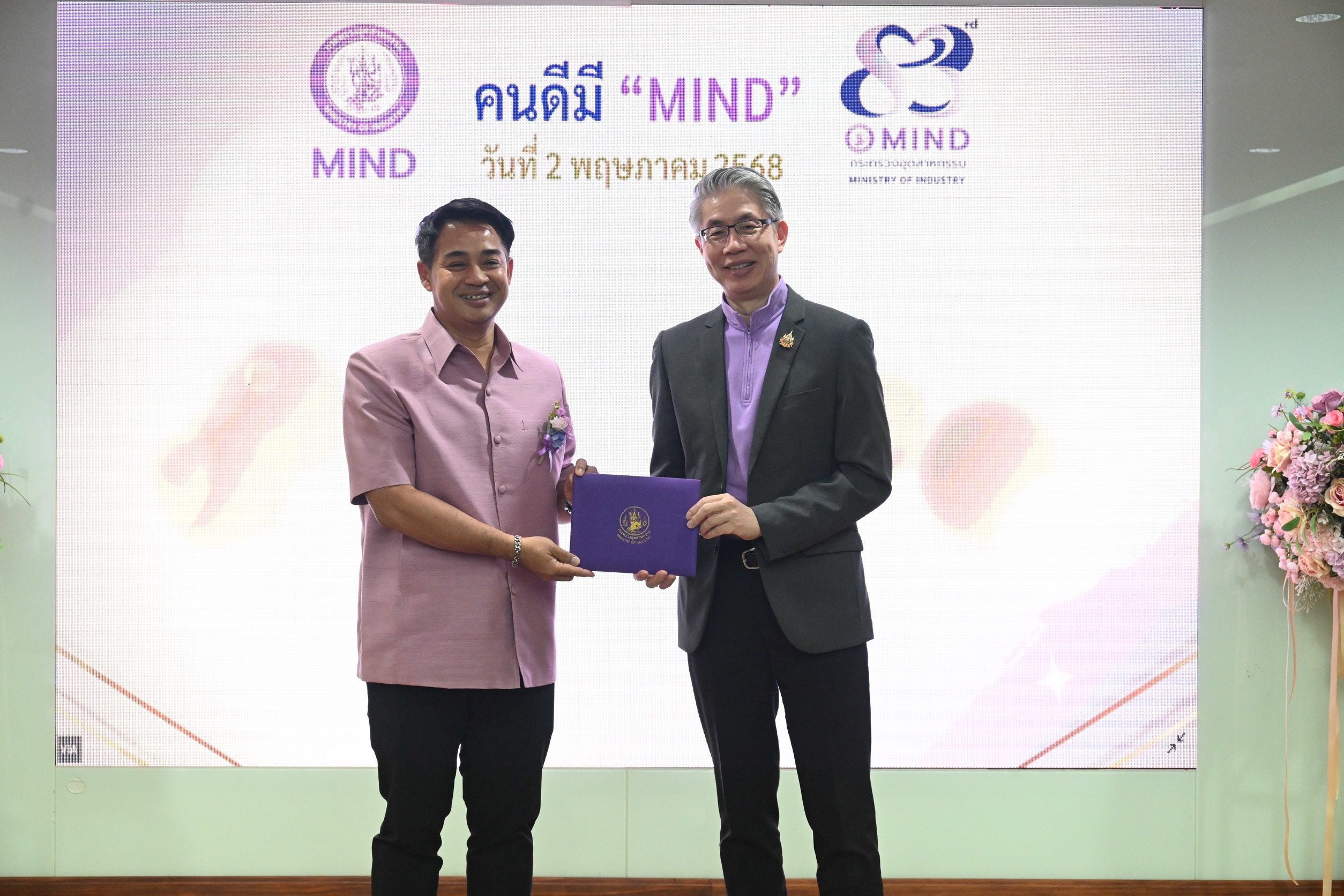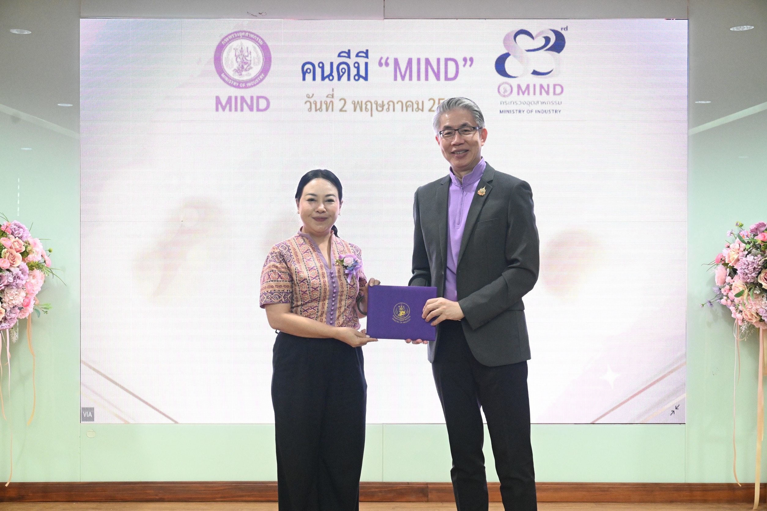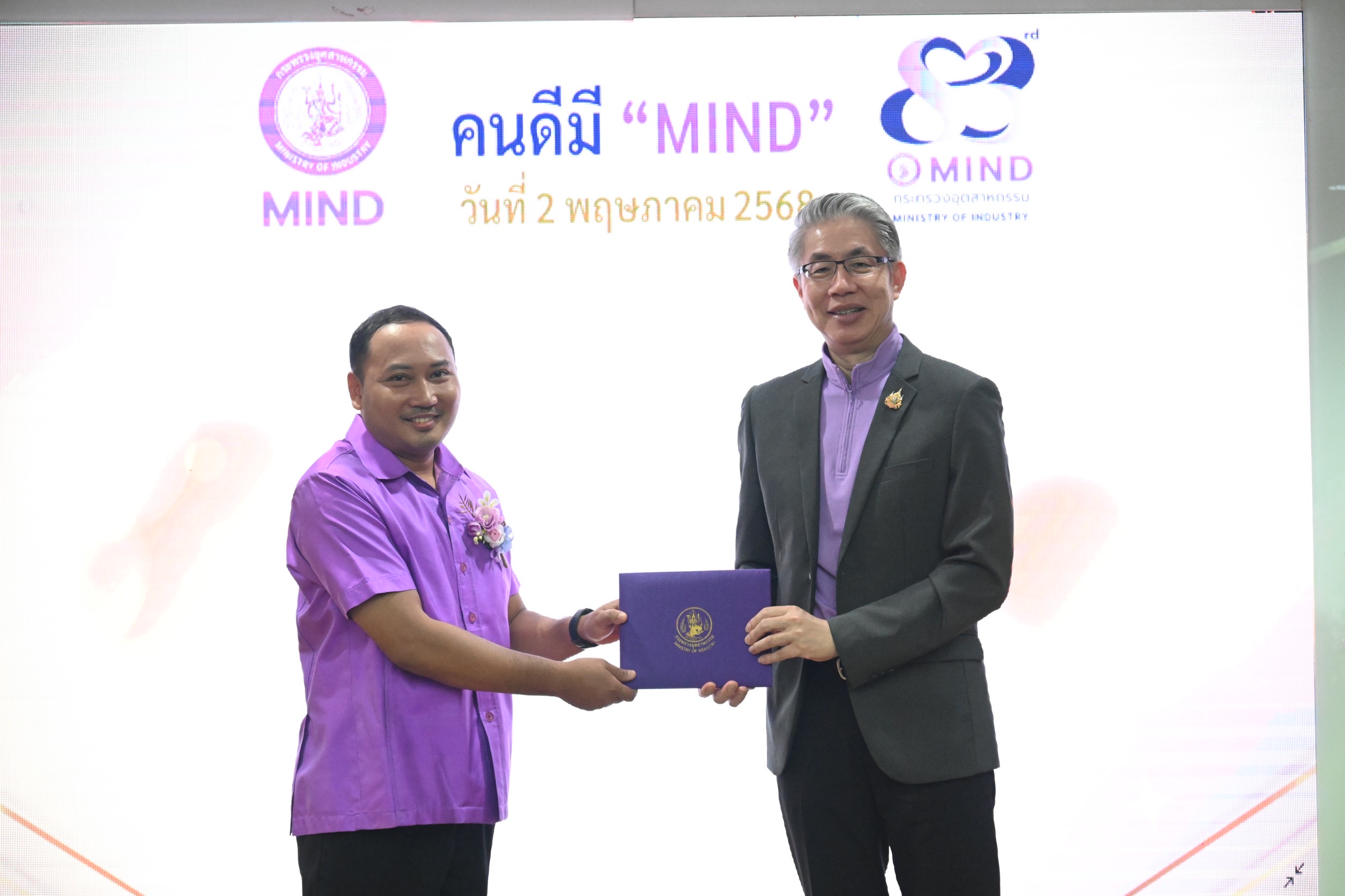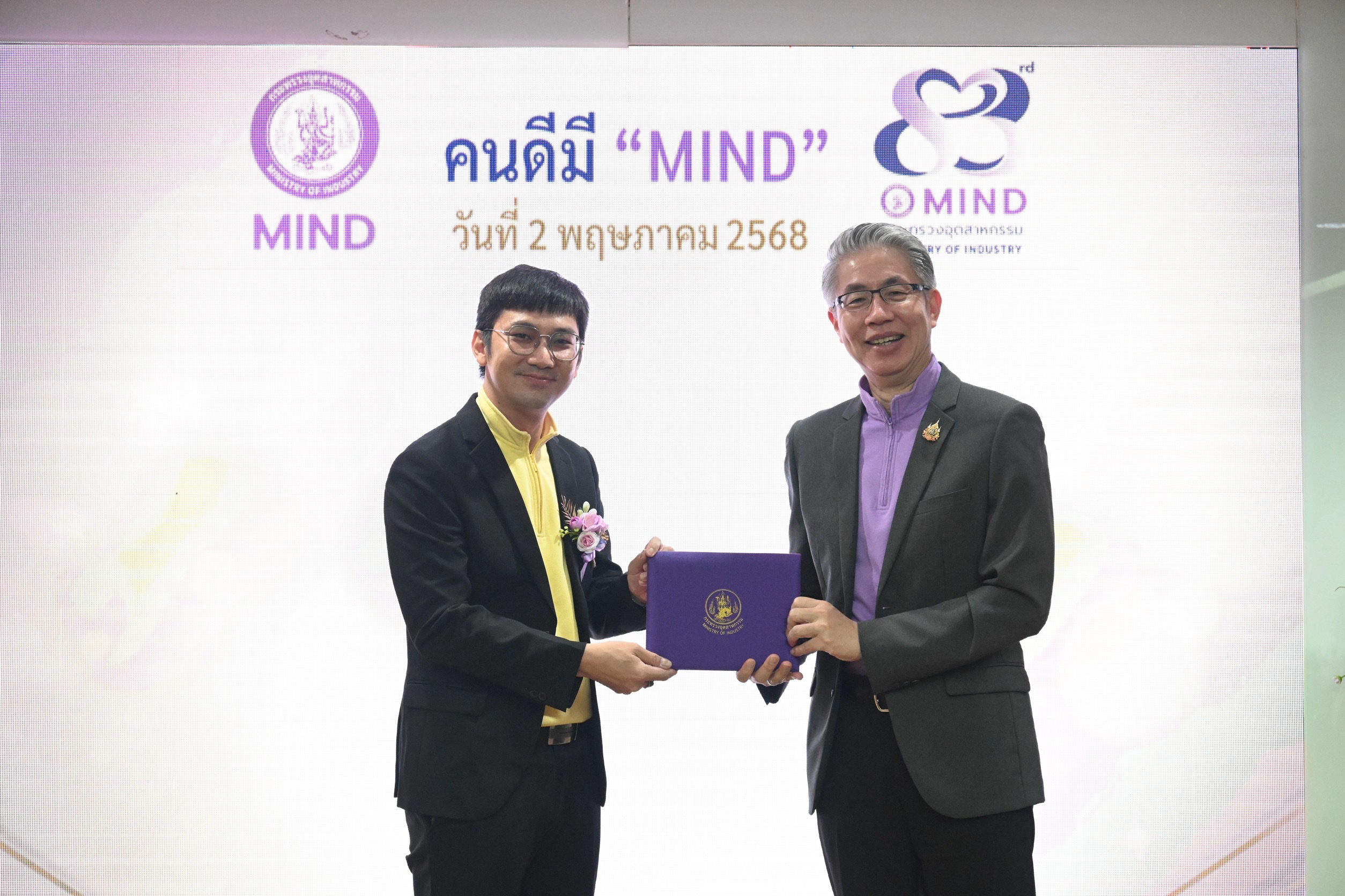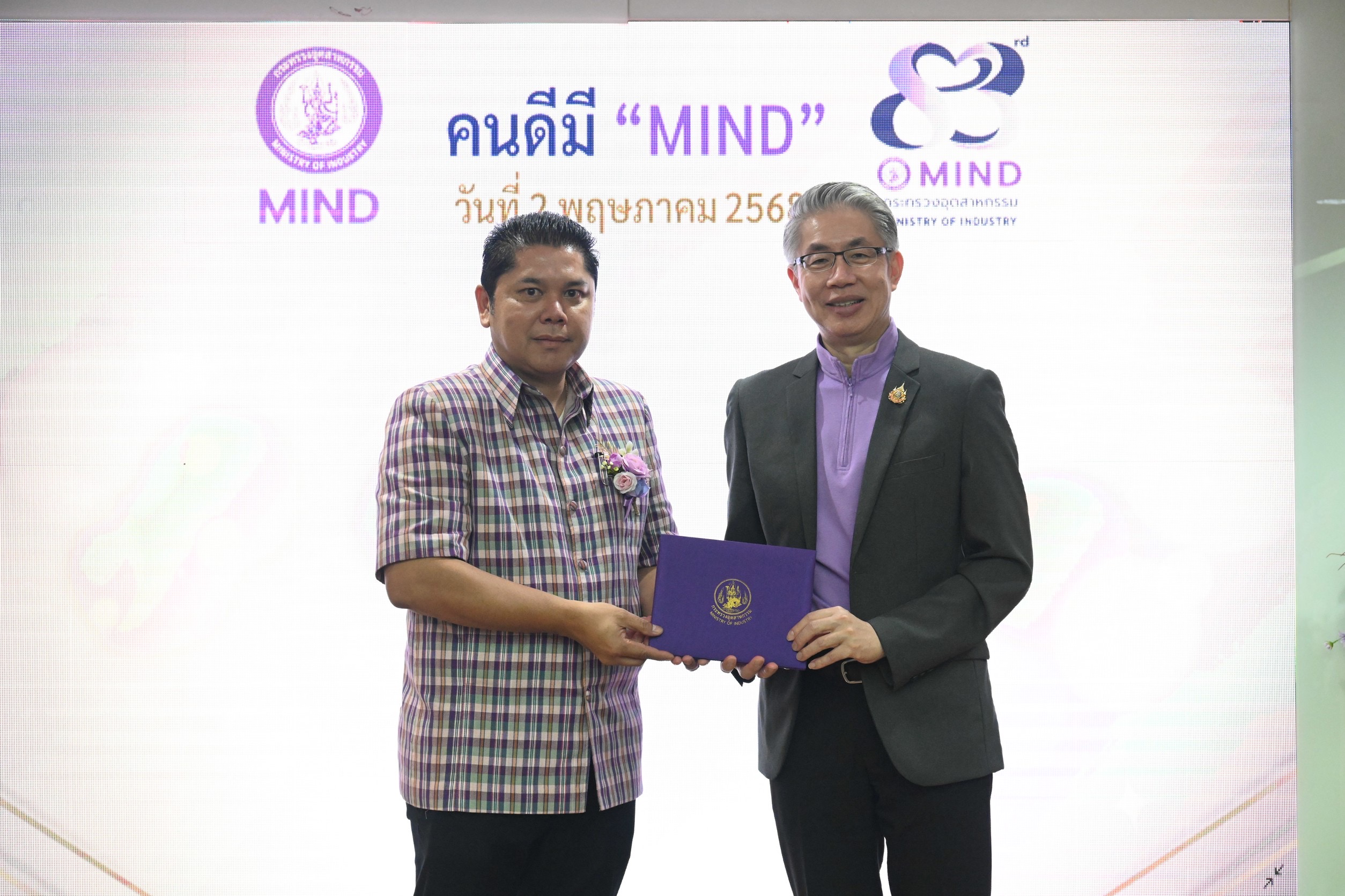 2 พฤษภาคม 2568 นายณัฐพล รังสิตพล ปลัดกระทรวงอุตสาหกรรม เป็นประธานในพิธีเปิดมอบเกียรติบัตรแก่ "คนดี มี MIND" ประจำปี พ.ศ.2567 ของสำนักงานปลัดกระทรวงอุตสาหกรรม จำนวน 14 ราย ดังนี้ 1) นางสาวสุนีย์ โสภณ ผู้อำนวยการกองบริหารทรัพยากรบุคคล 2) นายเตมีย์ พันธุวงค์ราช ผู้อำนวยการกองตรวจราชการ 3) นายอุดม สอนจิตต์ อุตสาหกรรมจังหวัดปทุมธานี 4) นางสุคนธ์ทิพย์ สินวิวัฒนากูล อุตสาหกรรมจังหวัดนครสวรรค์ 5) นายวัชรินทร์ เกาะคู นักวิชาการคอมพิวเตอร์ชำนาญการพิเศษ ศูนย์เทคโนโลยีสารสนเทศและการสื่อสาร 6) นายกฤษตฤณ เก้าเอี้ยน นักทรัพยากรบุคคลชำนาญการ กองบริหารทรัพยากรบุคคล 7) นางสาวกมลพร ศรีนวล นักวิชาการอุตสาหกรรมชำนาญการ สำนักงานอุตสาหกรรมจังหวัดประจวบคีรีขันธ์ 8 ) นายอนุสรณ์ ทัศศรี วิศวกรชำนาญการ สำนักงานอุตสาหกรรมจังหวัดบุรีรัมย์ 9) นายอนุศาสน์ อนุชัย วิศวกรปฏิบัติการ กองตรวจราชการ 10) นาวสาวสุทารัตน์ สงค์ประเสริฐ วิศวกรปฏิบัติการ สำนักงานอุตสาหกรรมจังหวัดพิจิตร 11) นางสาวนพมาศ เขื่อนแก้ว นักวิเคราะห์นโยบายและแผนปฏิบัติการ สำนักงานอุตสาหกรรมจังหวัดลำปาง 12) นายพัทธวุฒิ ศรีงาม พนักงานขับรถยนต์ ส.2 สำนักงานอุตสาหกรรมจังหวัดประจวบคีรีขันธ์ 13) นางสาวกานต์นิศา คล่องวาจา นักวิเคราะห์นโยบายและแผน กองยุทธศาสตร์และแผนงาน และ 14) นายสิทธิโชค ขำเมือง นักวิชาการอุตสาหกรรม สำนักงานอุตสาหกรรมจังหวัดนนทบุรี โดยมี นายบรรจง สุกรีฑา นายศุภกิจ บุญศิริ นายวิฤทธิ์ วิเศษสินธุ์ รองปลัดกระทรวงอุตสาหกรรม นายเอกนิติ รมยานนท์ นายวีรพงษ์ เอี่ยมเจริญชัย ผู้ตรวจราชการกระทรวงอุตสาหกรรม และผู้บริหารกระทรวงอุตสาหกรรม ร่วมงาน ณ ห้องประชุม อก.1 ชั้น 2 อาคารสำนักงานปลัดกระทรวงอุตสาหกรรม
