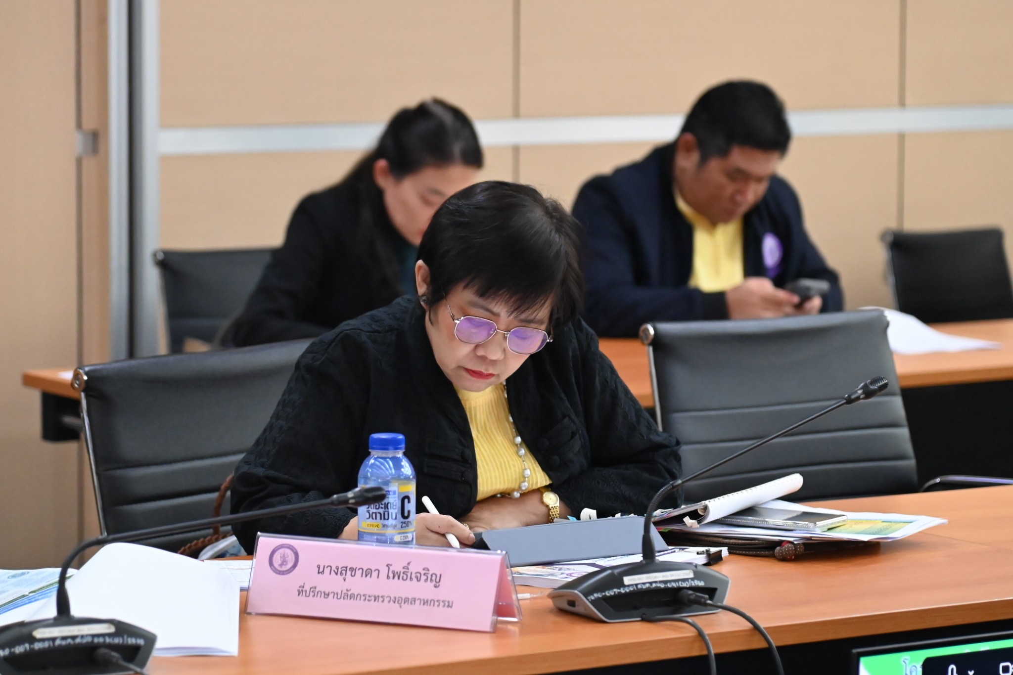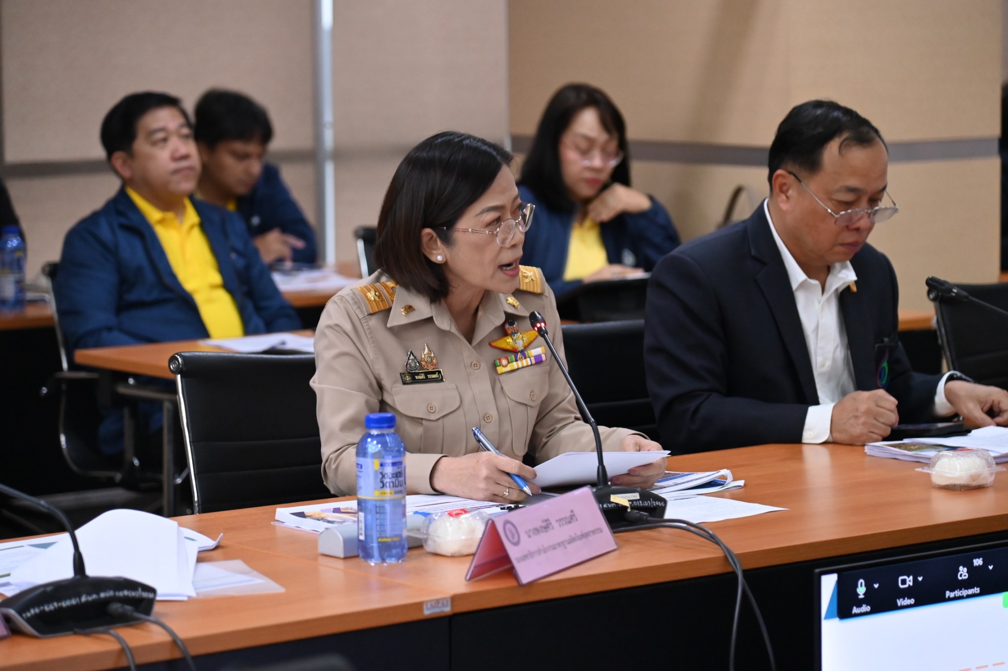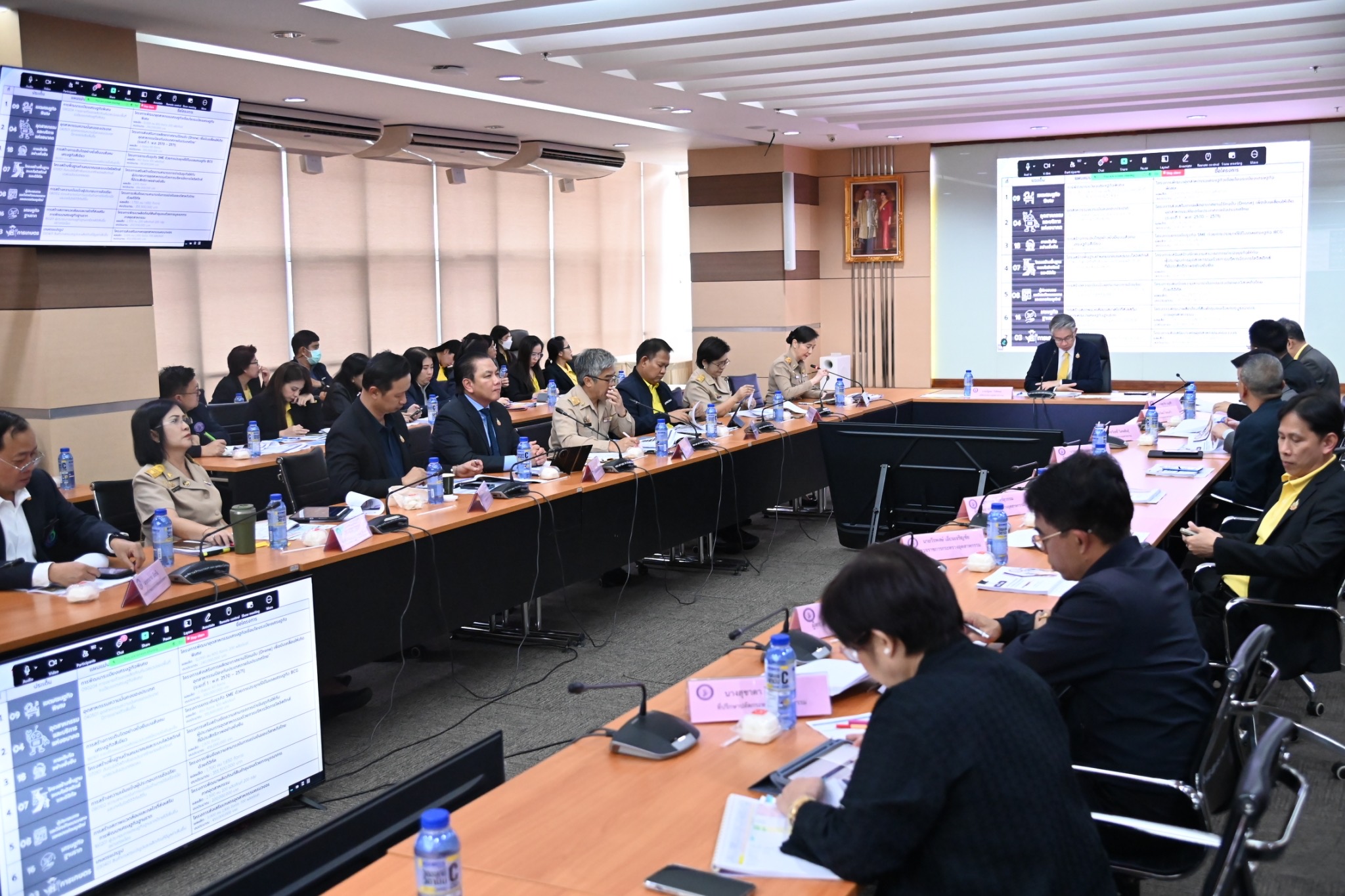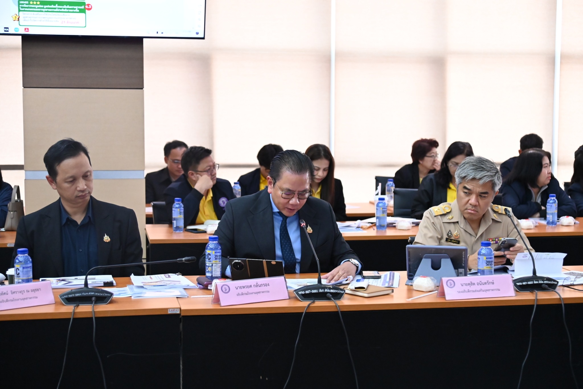 นายภาสกร ชัยรัตน์ ผู้อำนวยการสำนักงานเศรษฐกิจอุตสาหกรรม นายพรยศ กลั่นกรอง อธิบดีกรมโรงงานอุตสาหกรรม นายธีรทัศน์ อิศรางกูร ณ อยุธยา รองอธิบดีกรมโรงงานอุตสาหกรรม นางดวงดาว ขาวเจริญ นายสุรพล ปลื้มใจ นายดุสิต อนันตรักษ์ รองอธิบดีกรมส่งเสริมอุตสาหกรรม นางสาวอารยา ไสลเพชร รองอธิบดีกรมอุตสาหกรรมพื้นฐานและการเหมืองแร่ นางพงษ์ศิริ วรรณศรี รองเลขาธิการสำนักงานมาตรฐานผลิตภัณฑ์อุตสาหกรรม นายสามารถ น้อยวัน รองเลขาธิการคณะกรรมการอ้อยและน้ำตาลทราย นางสาวณิรดา วิสุทธิชาติธาดา นายภัทรพล ลิ้มภักดี รองผู้อำนวยการสำนักงานเศรษฐกิจอุตสาหกรรม คณะผู้บริหาร อุตสาหกรรมจังหวัด 76 จังหวัด และเจ้าหน้าที่ที่เกี่ยวข้อง เข้าร่วม ณ ห้องประชุม อก.1 ชั้น 2 อาคารสำนักงานปลัดกระทรวงอุตสาหกรรม และผ่านสื่ออิเล็กทรอนิกส์ (Zoom Meeting)